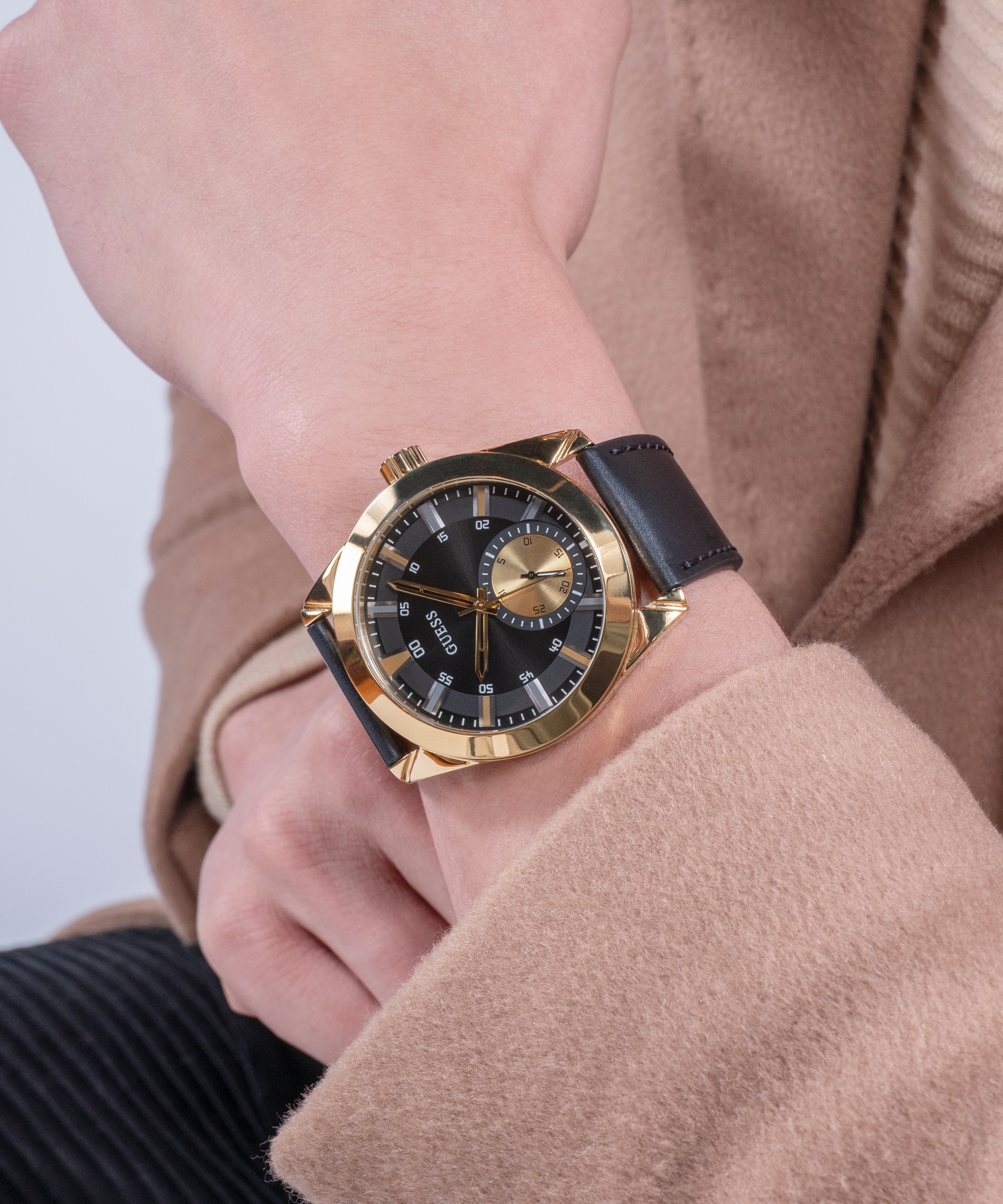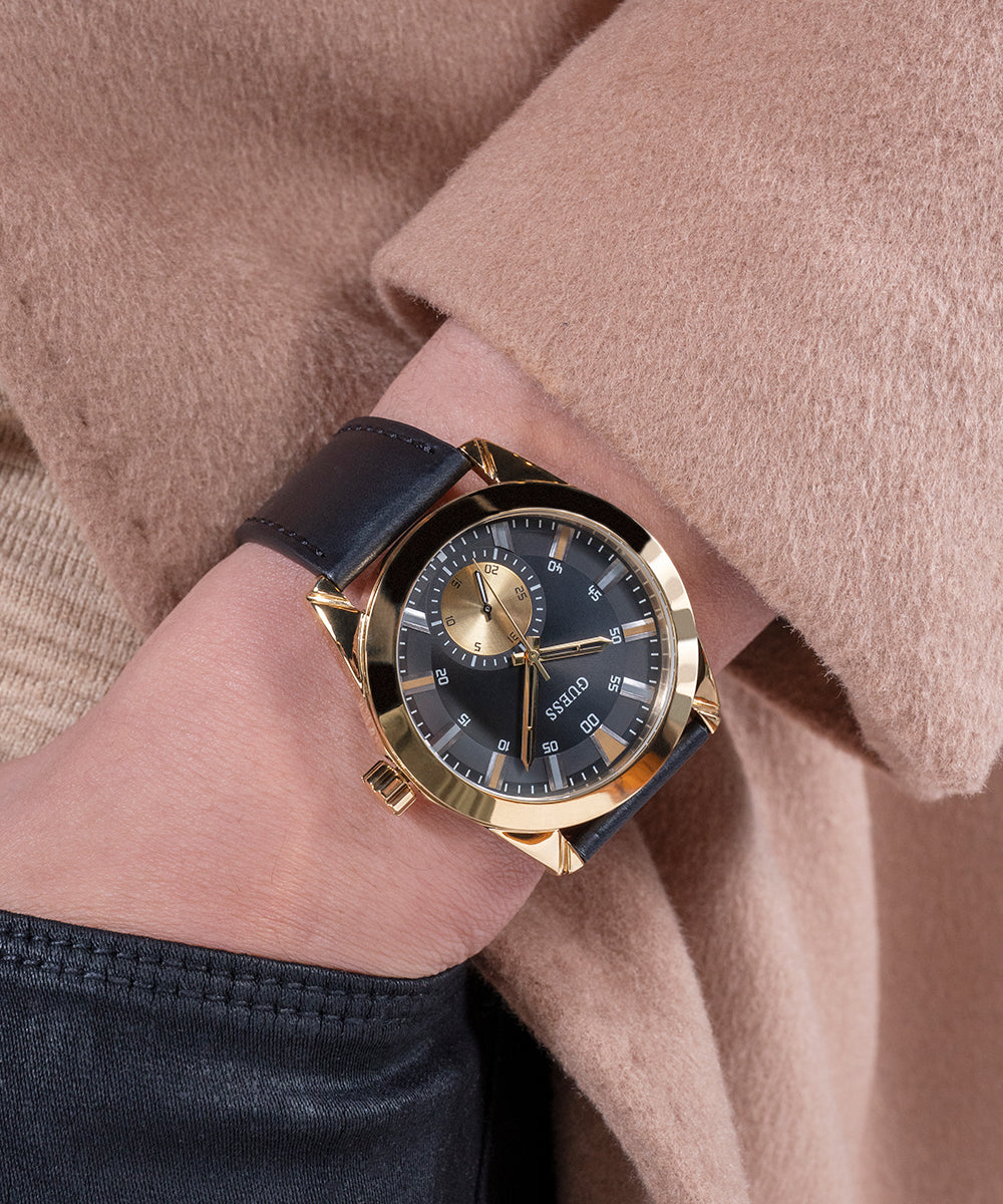 Guess Mens Black Gold Tone Multi-function Watch