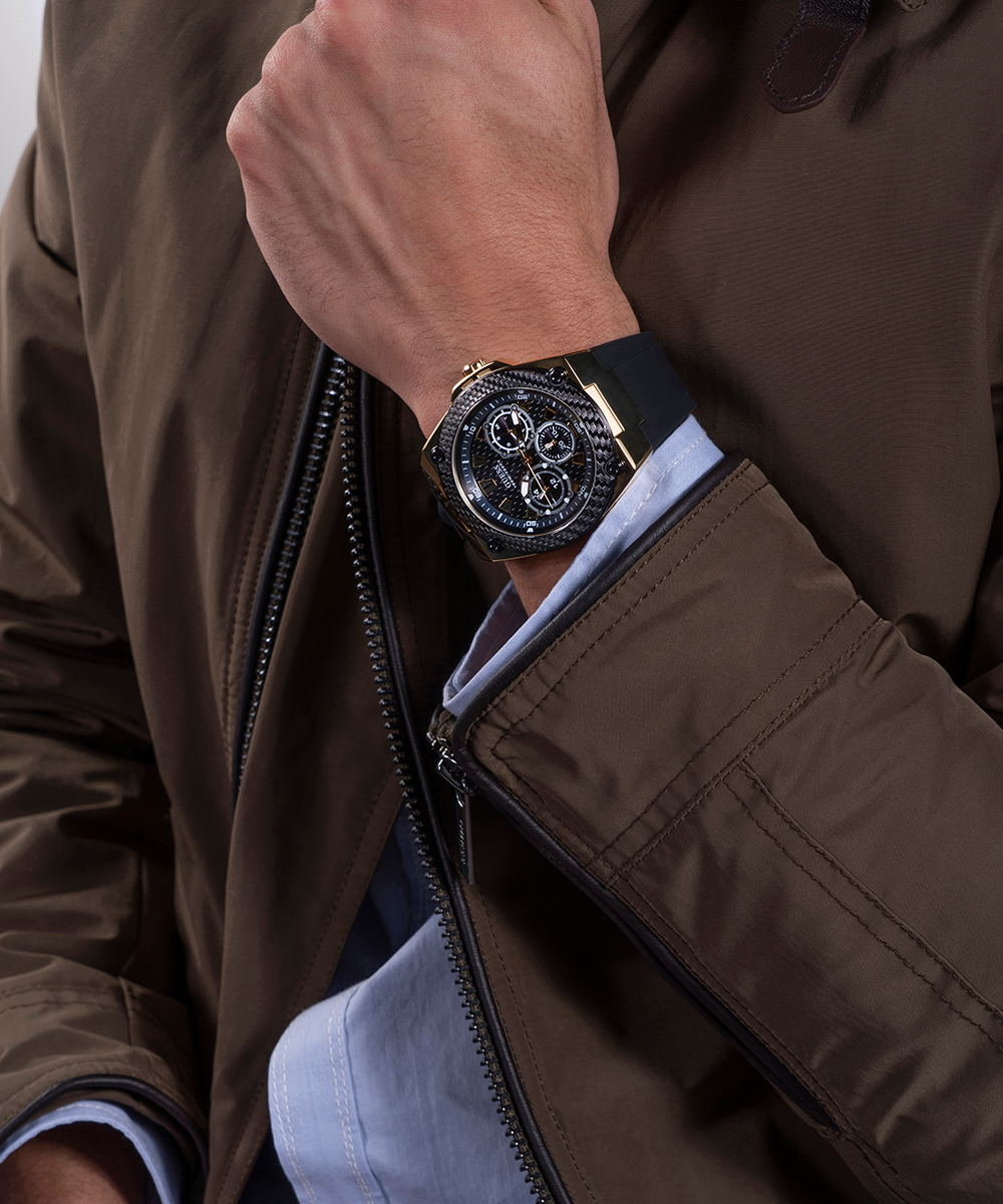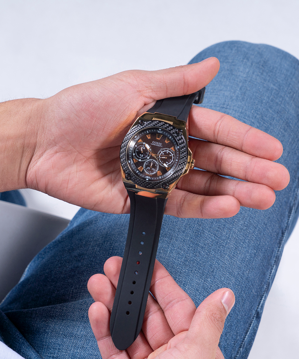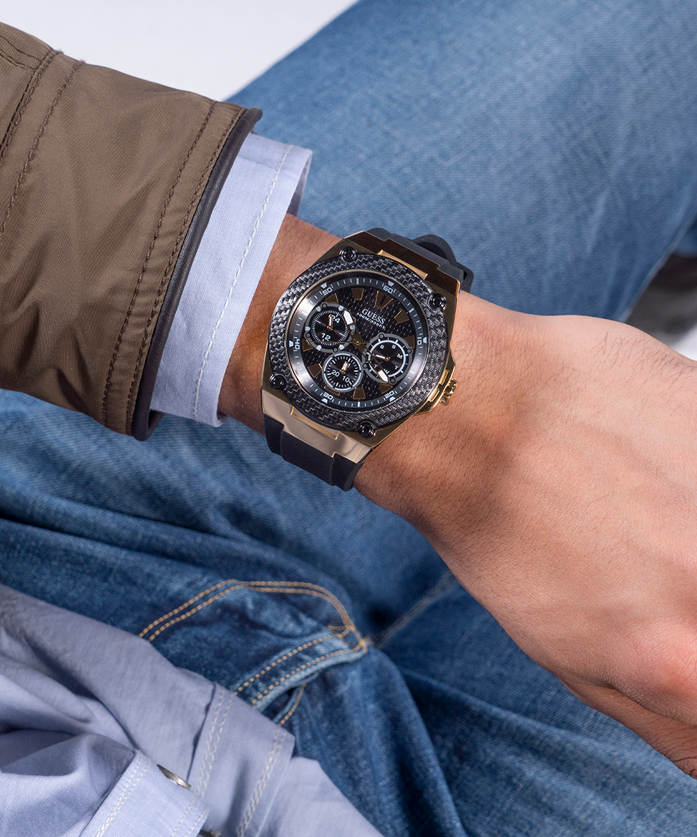 Leave a legacy wherever you go with this aggressive carbon fiber look sport watch in silicone