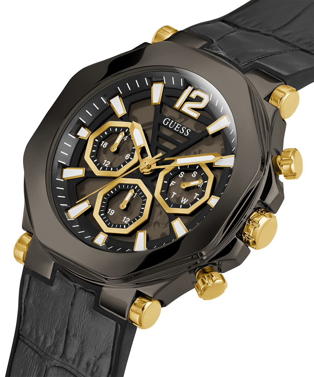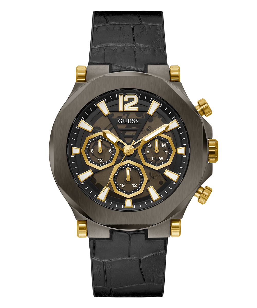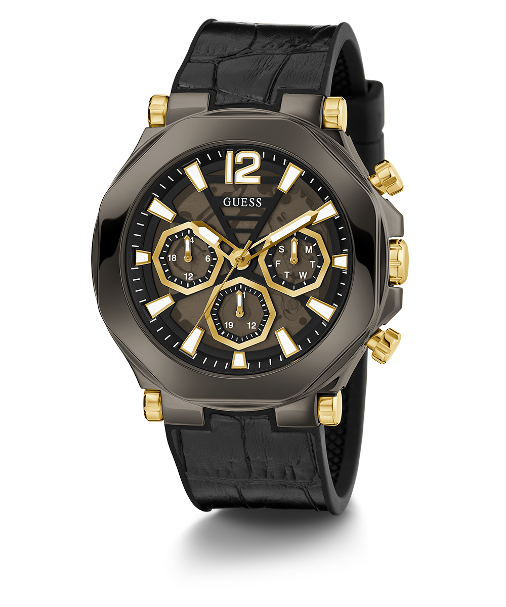 Go to the shopKeeping you on the edge of fashion, an octagonal case design with cut-thru dial details is complimented with a croco-leather on silicone signature flex strap
