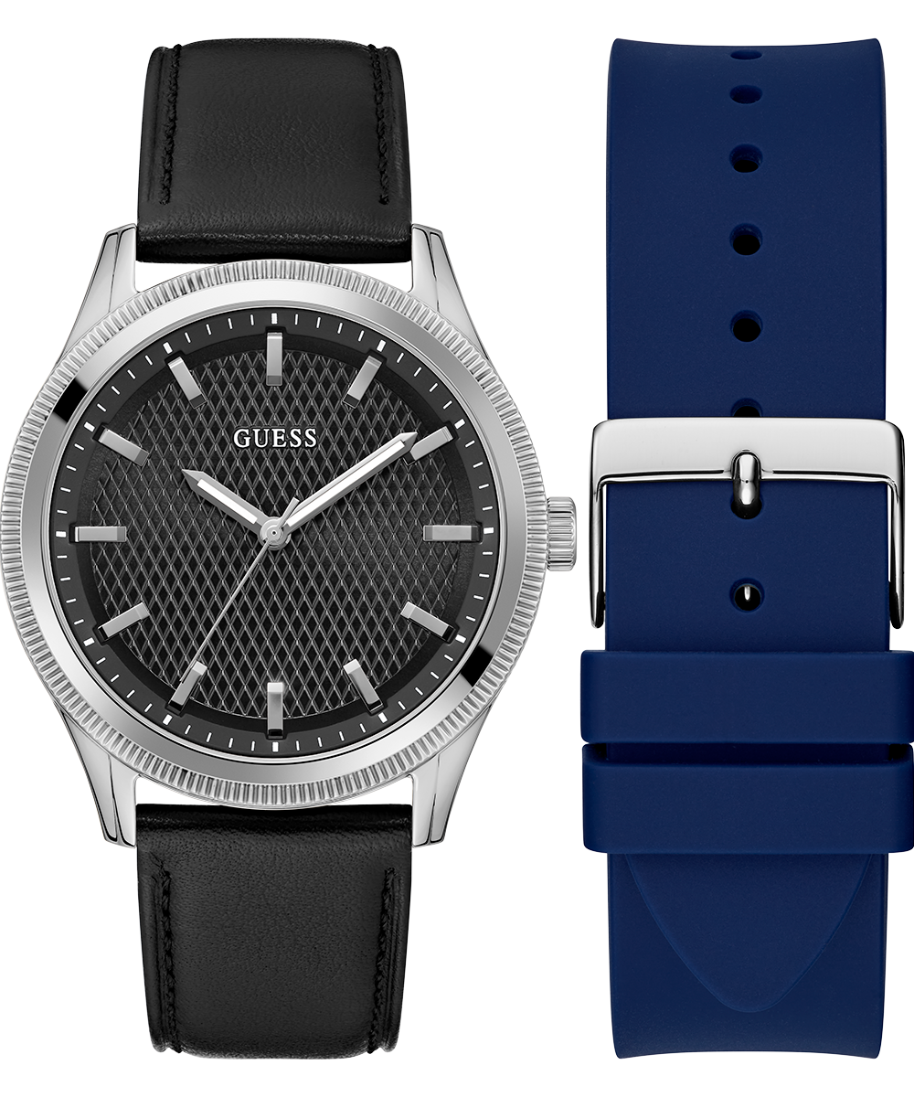GUESS Mens Black Silver Tone Analog Watch Box Set