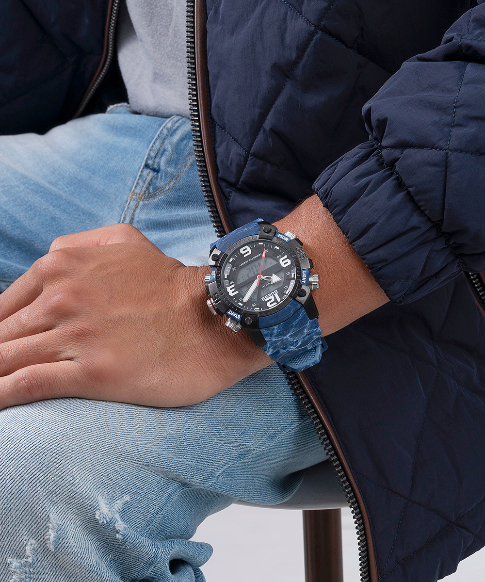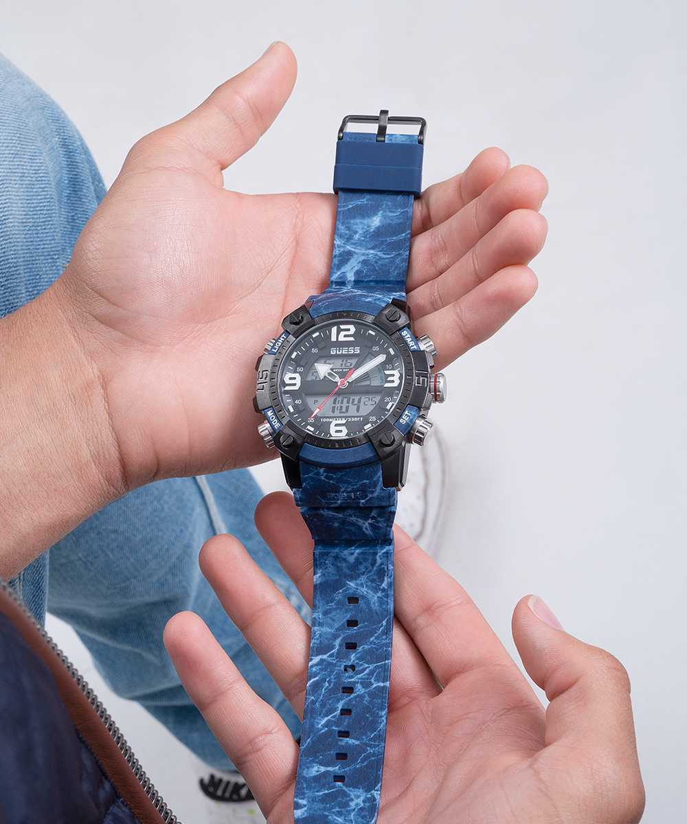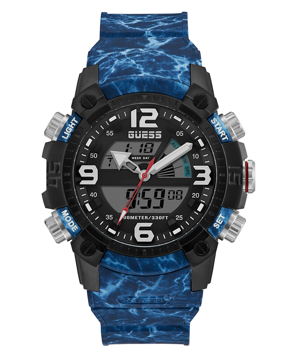 GUESS Mens Blue Black Digital Watch