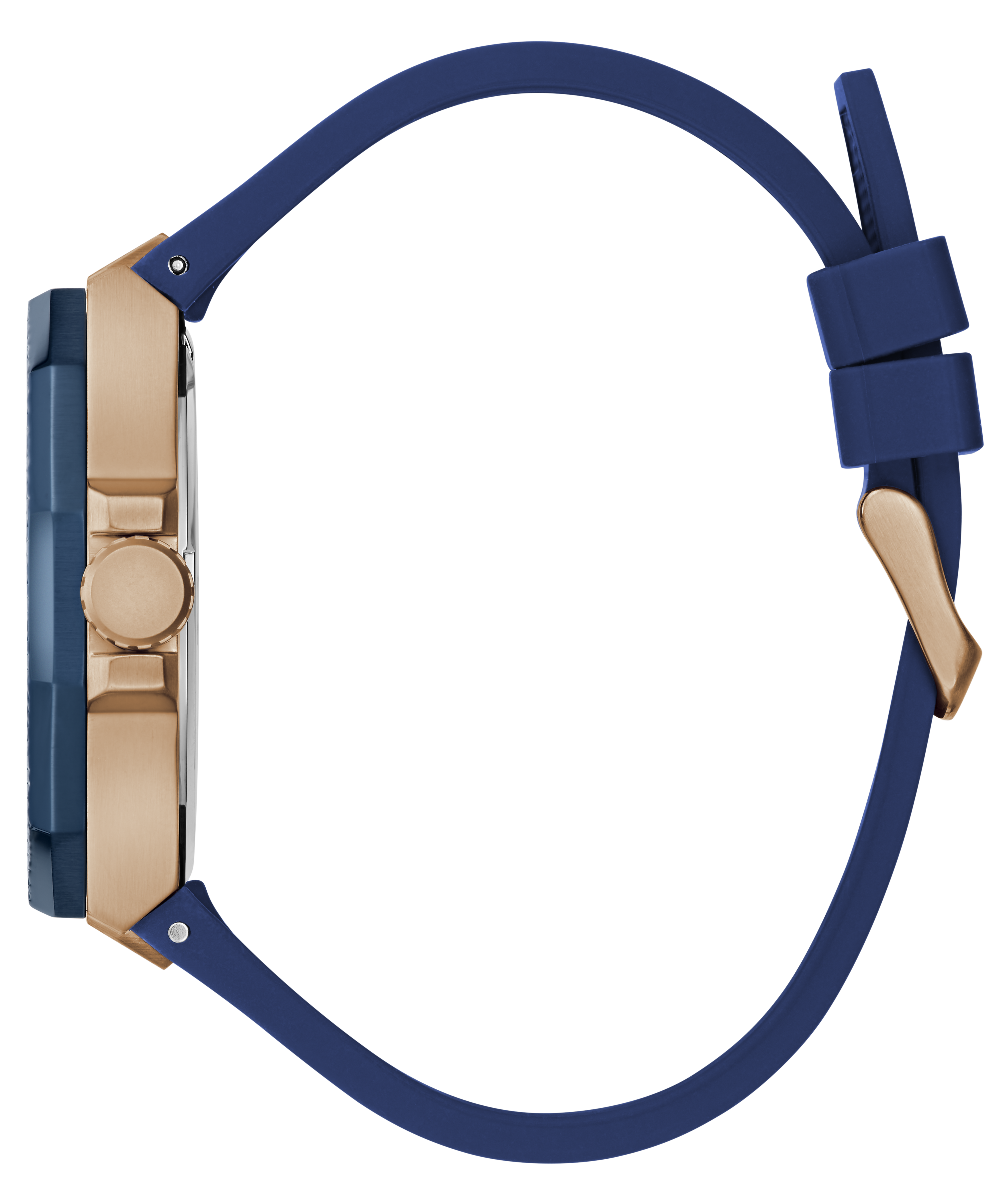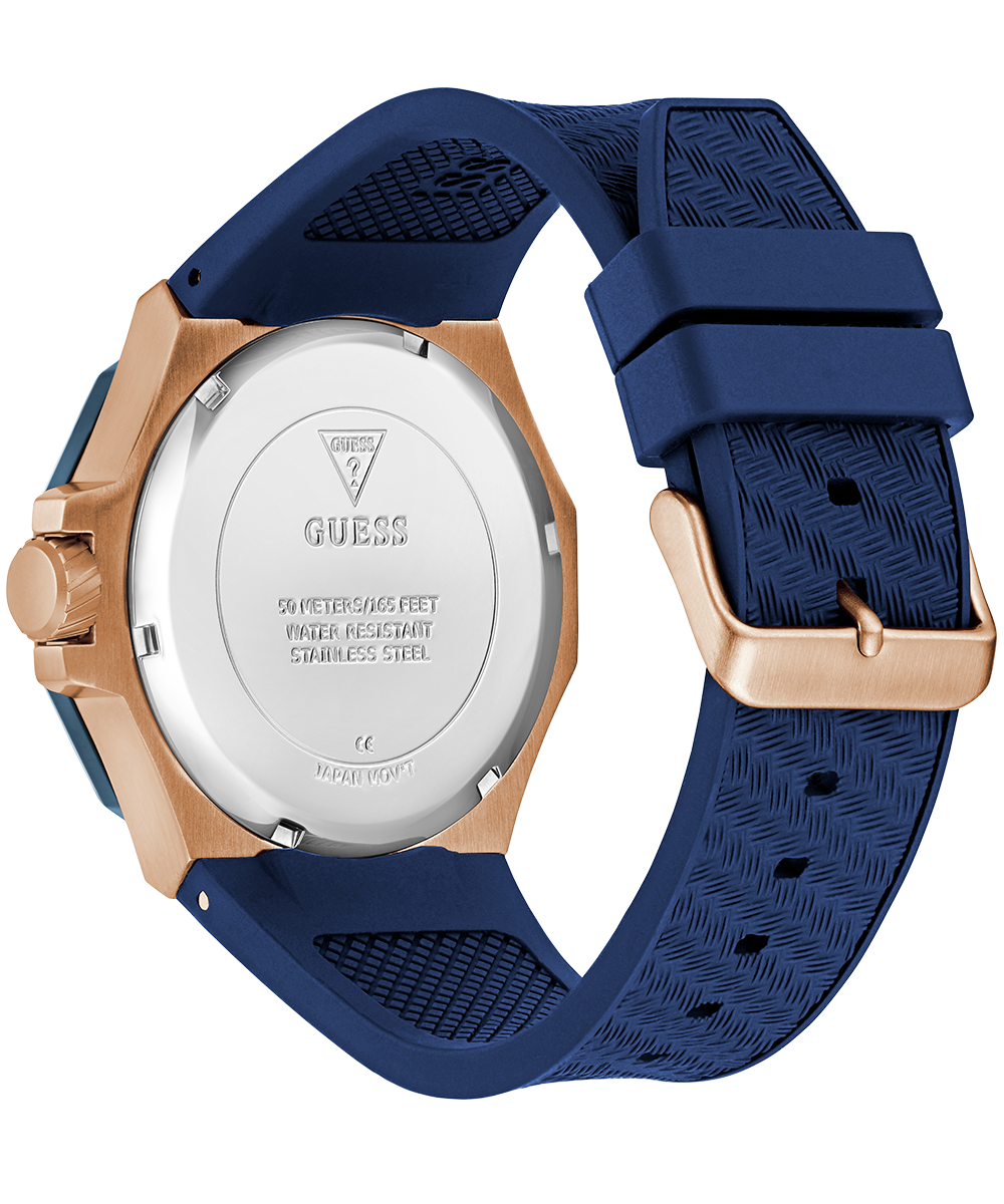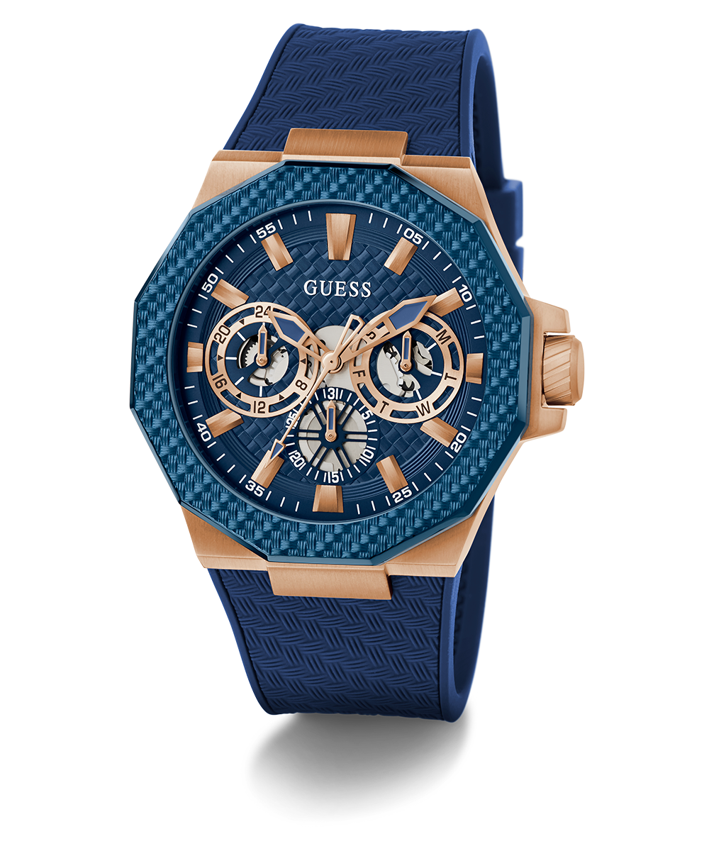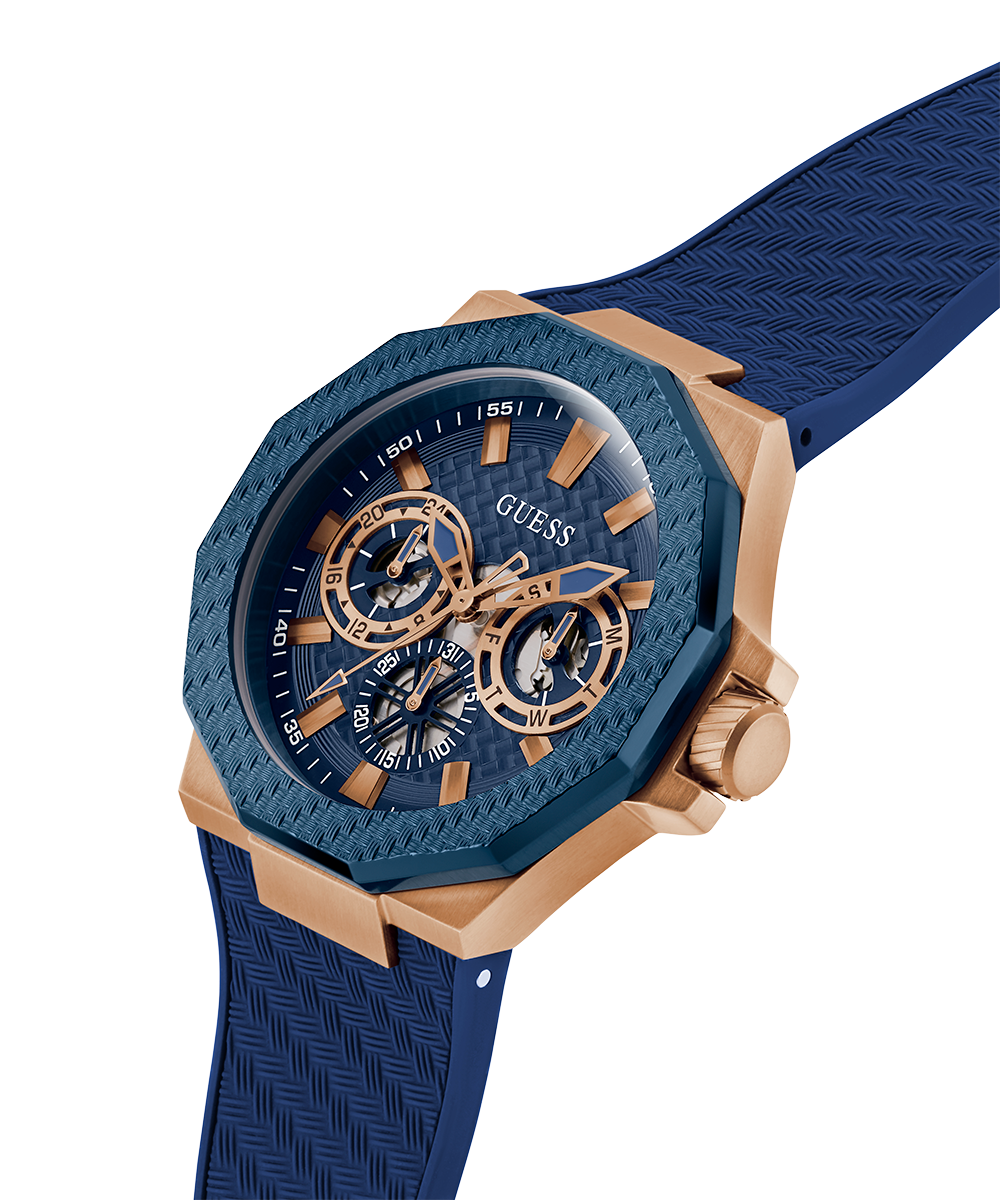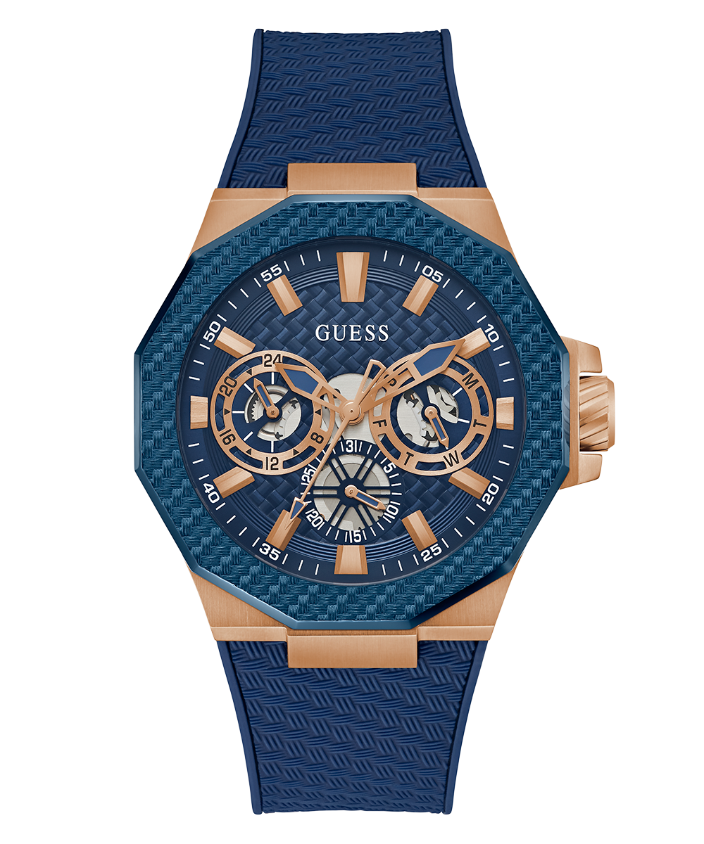 GUESS Mens Blue Rose Gold Tone Multi-function Watch