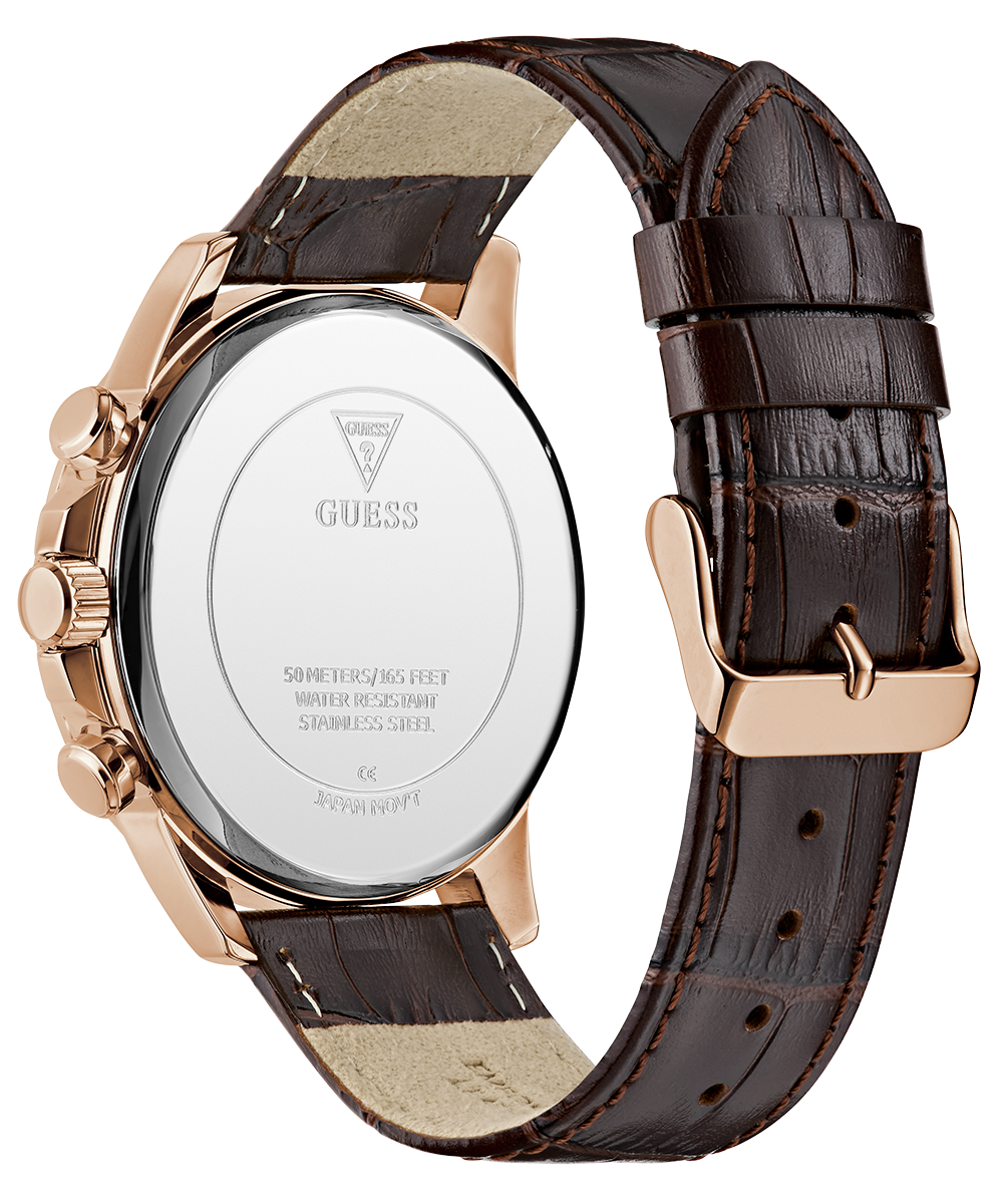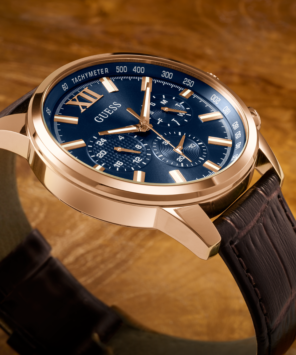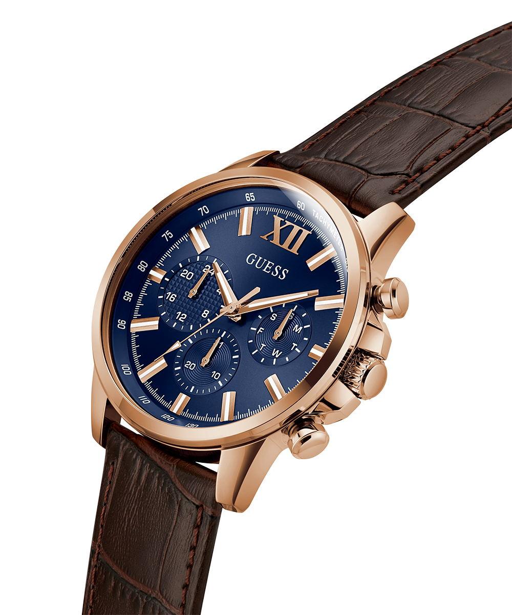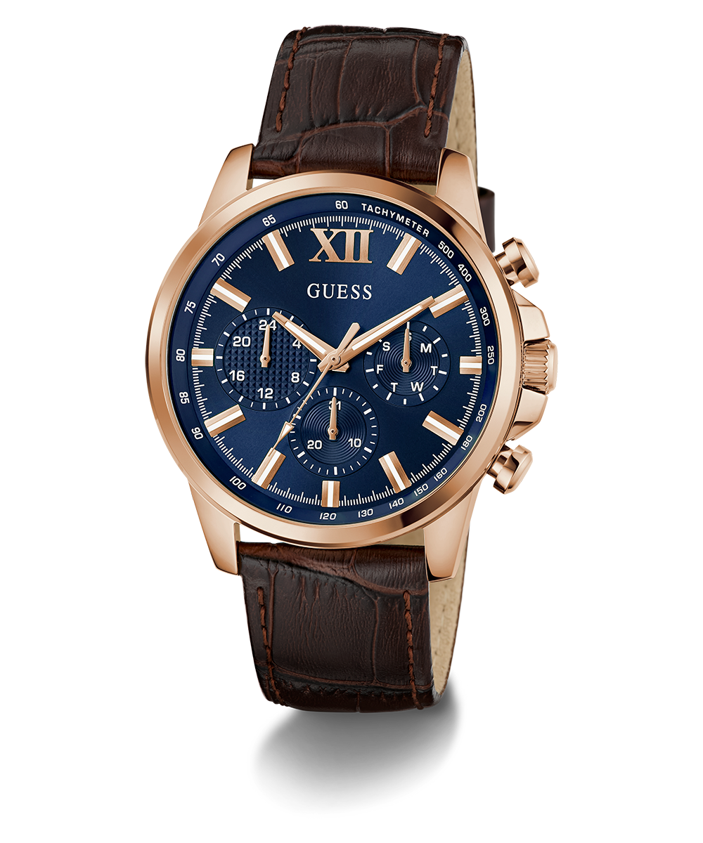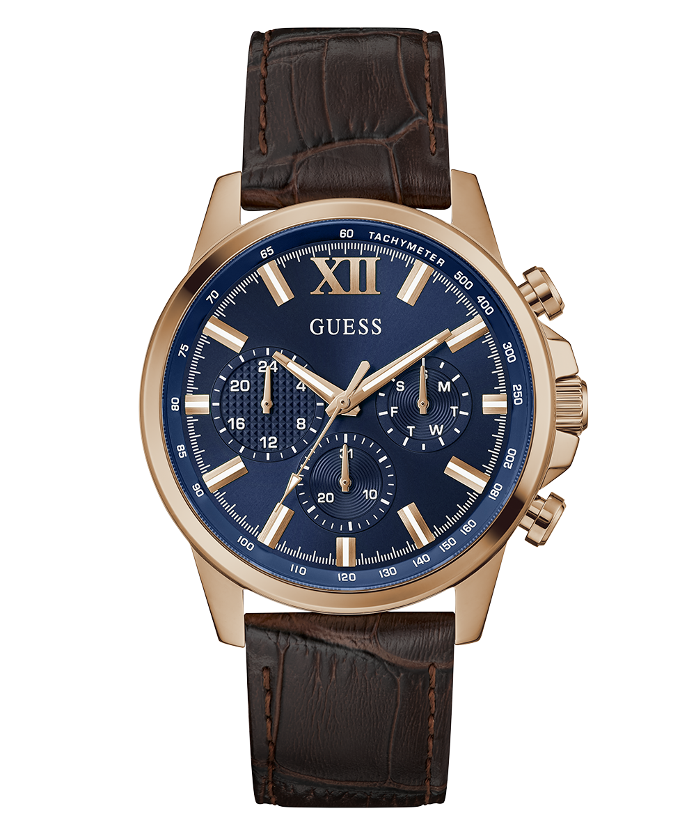 Go to the shopSure to be a staple in your watch wardrobe this clean dress look features a chrono-look multi-function dial and is paired with a croco leather strap.