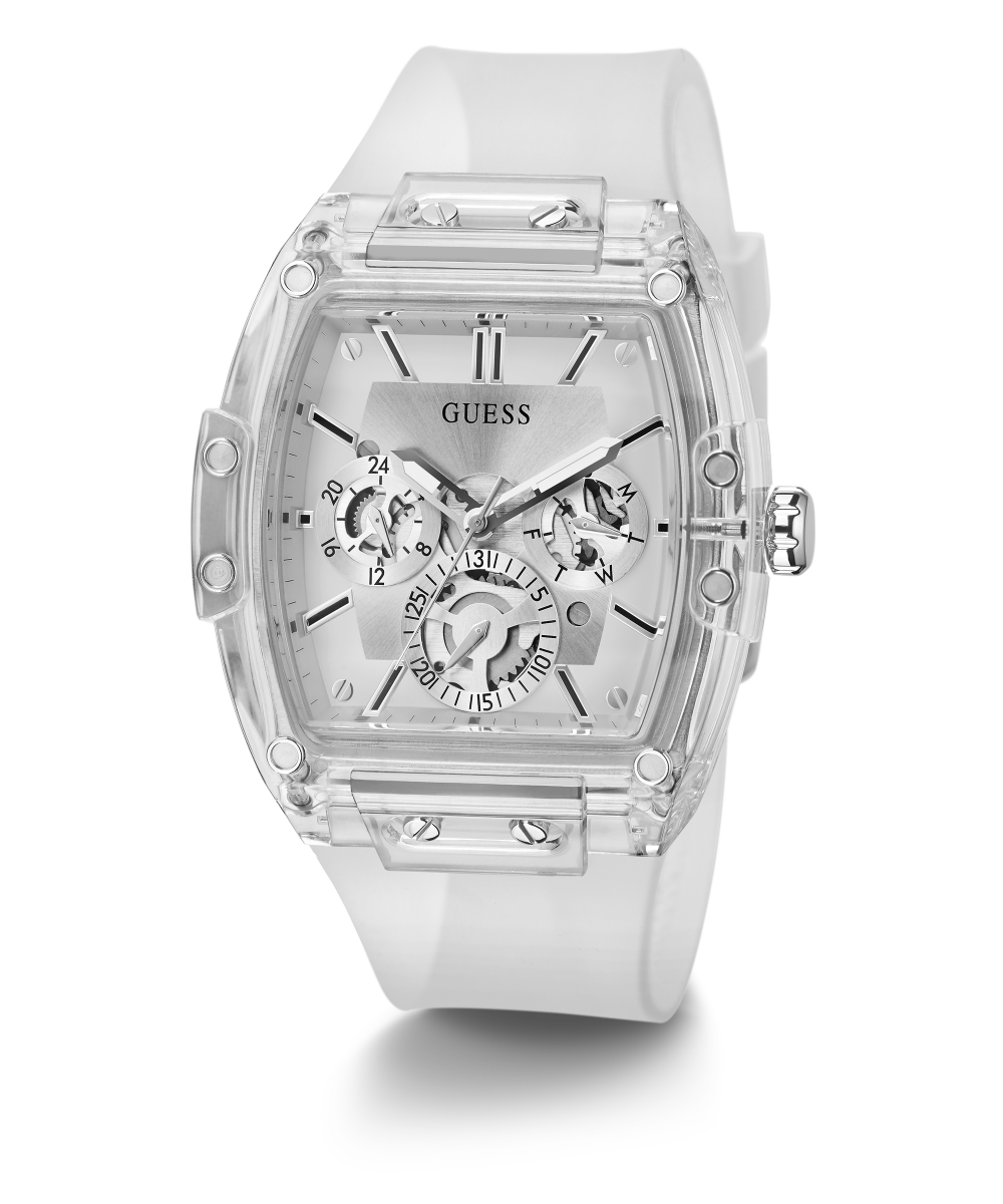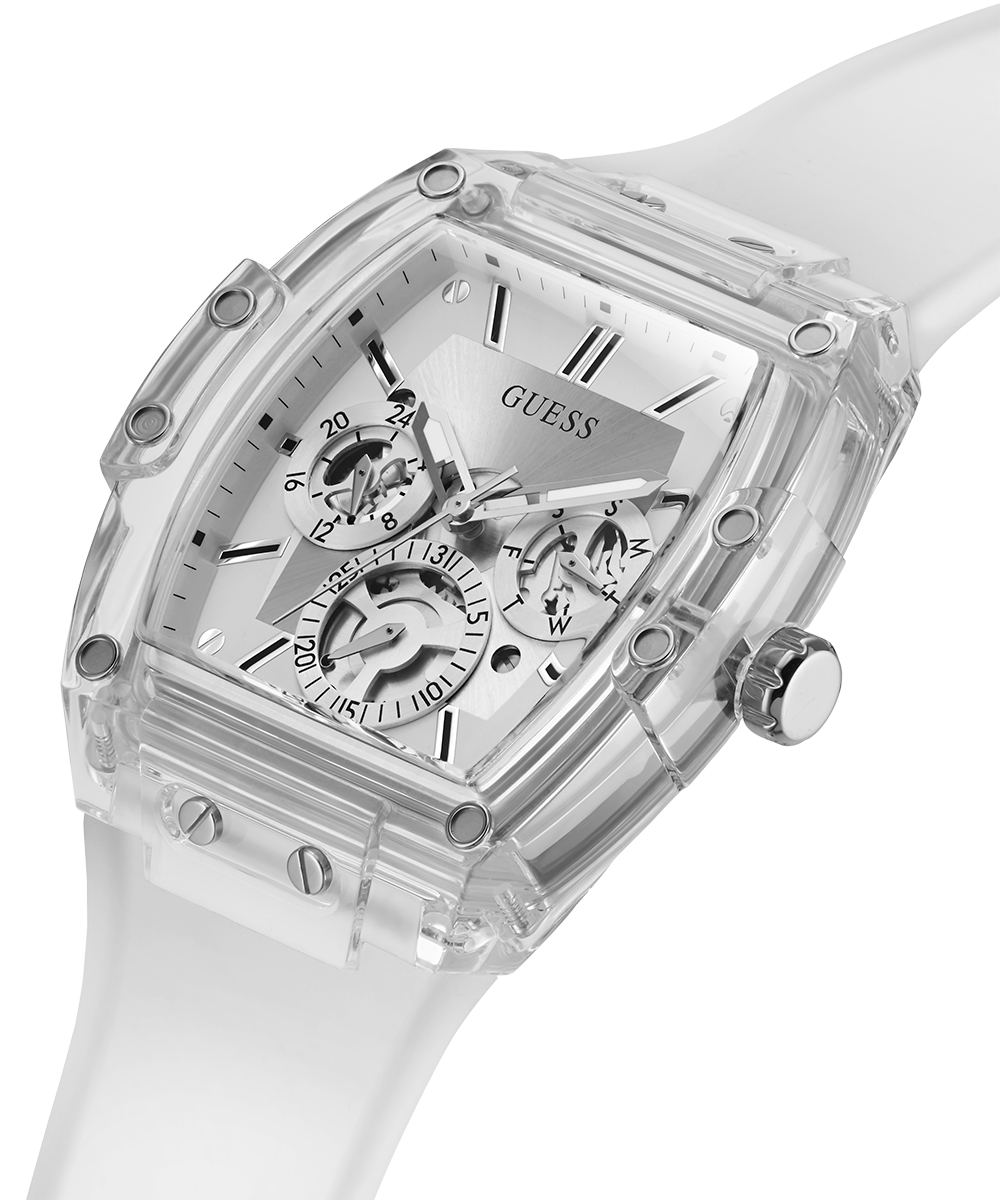 Go to the shopSkeleton dial details keep this phoenix on the rise. Featuring a translucent barrel shaped case with matching multi-function dial, this pairs perfectly with a smooth translucent silicone strap.