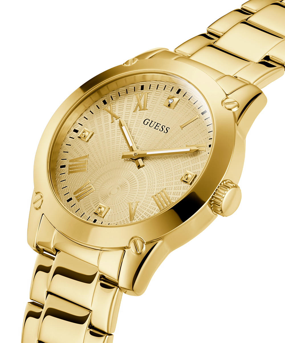 Back to Basics with this dressed up look featuring a diamond dial indice at the 12 o'clock hour and integrated bracelet design.