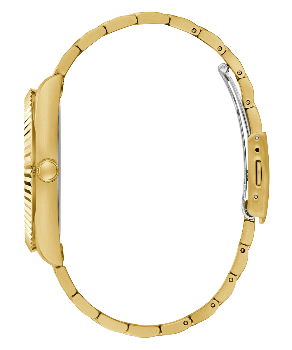 A classic look that never gets old. This coin edge bezel is integrated with a brushed and polished 3 link bracelet and featured a day of the week window at the 12 o'clock hour with a bubble date at the 3 o'clock.