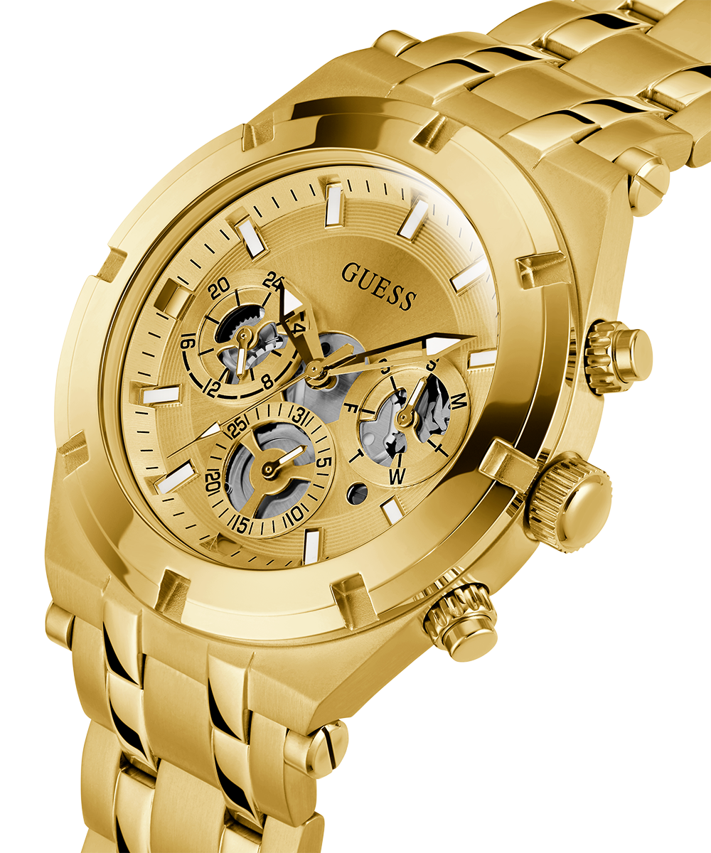 Style meets functionality with this multi-function chrono-look style with skeleton details to the sub-eyes that showcase the movement of the watch.