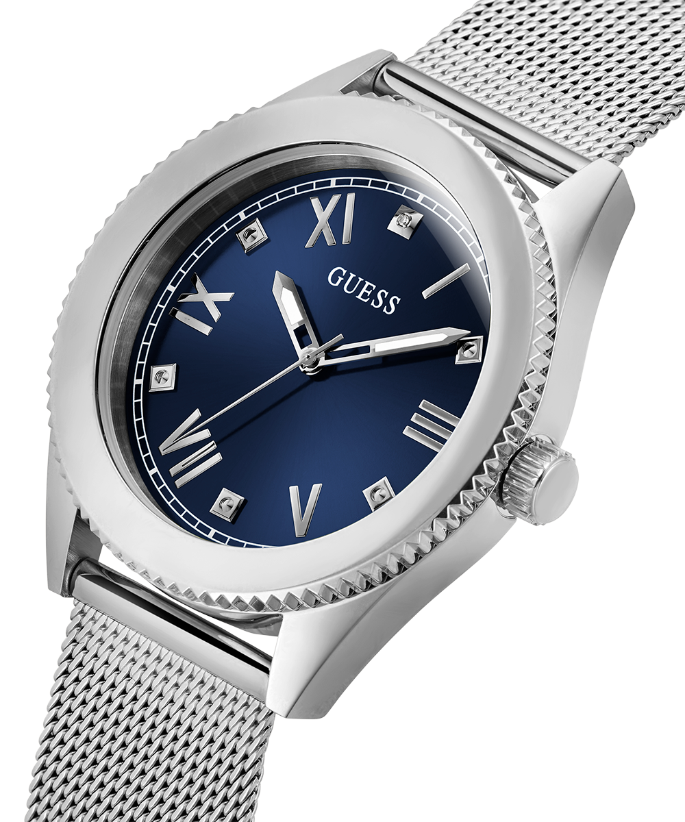 Diamonds are not only a girl's best friend! This dressed up silicone strap style features a genuine diamond marker at the 12-hour paired with roman numeral indices.