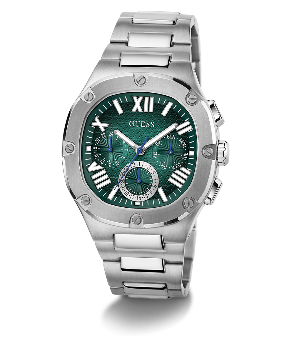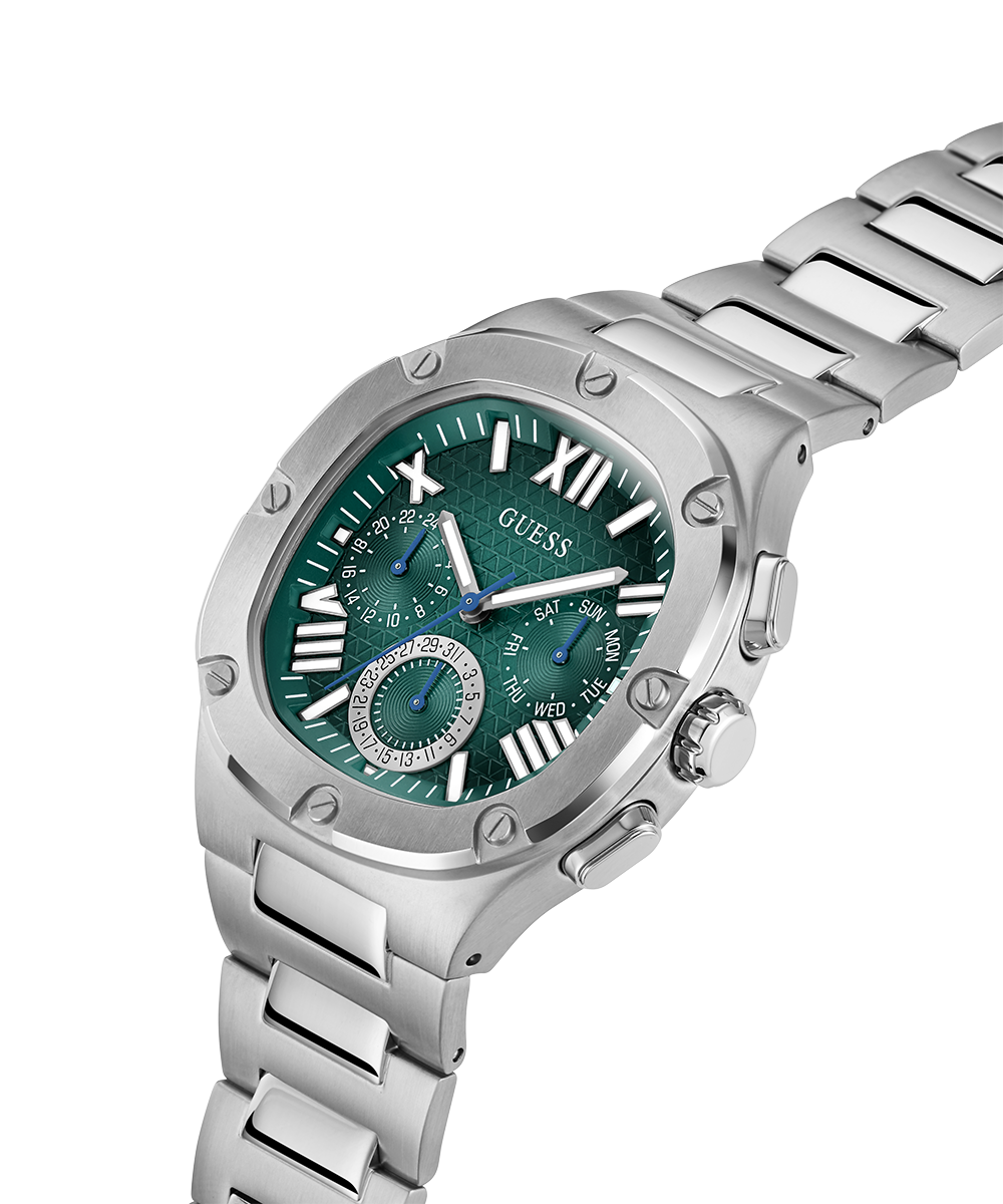 Go to the shopThis headliner is sure to steal the show, it has a unique rounded square case design with screw details and a textured multi-function dial with ombre effect and a brushed and polished bracelet.