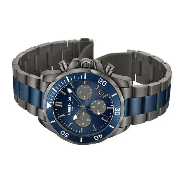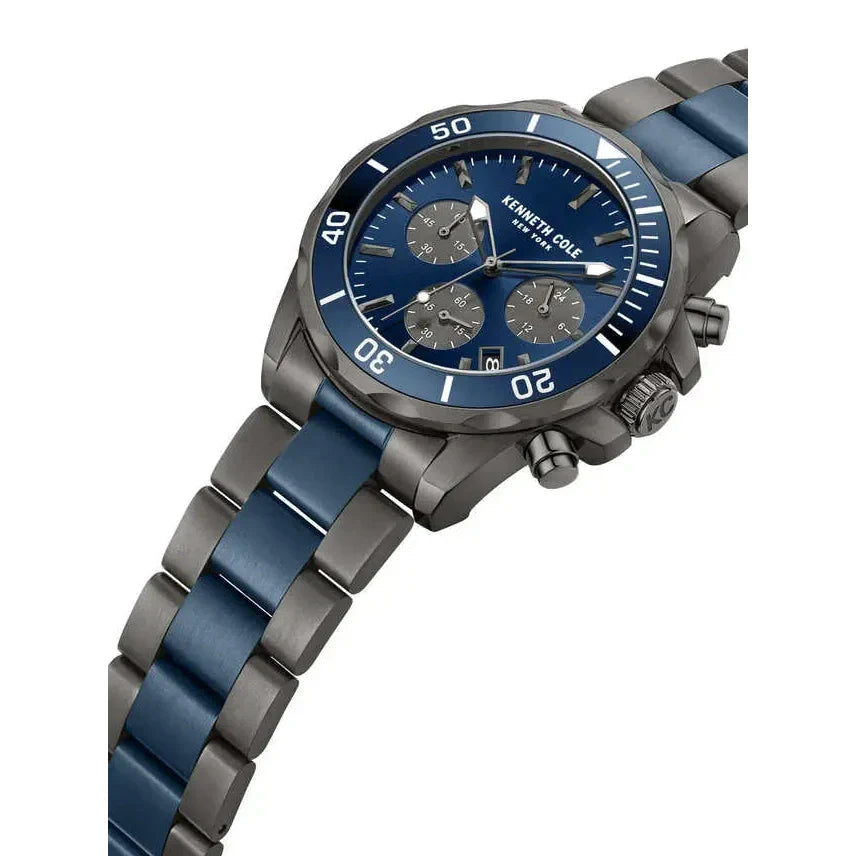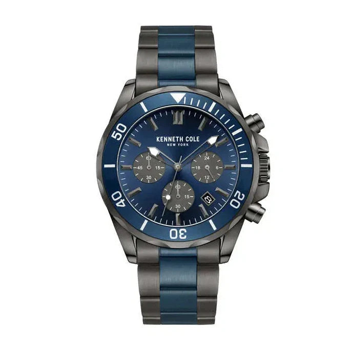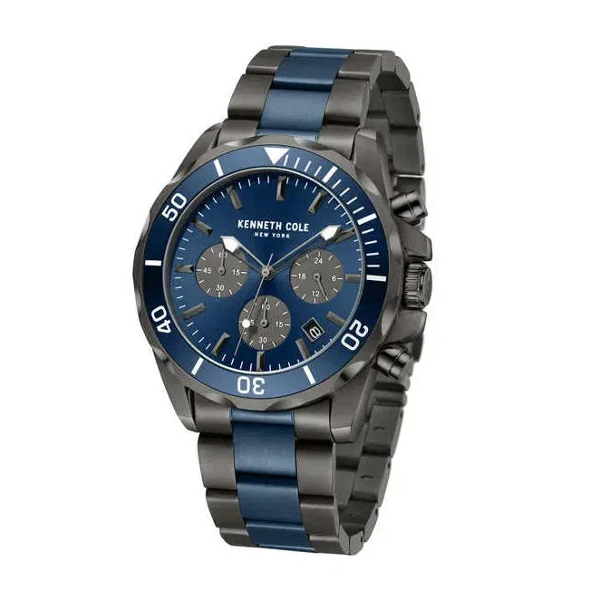 Expertly crafted, the Kenneth Cole Women's Watch is a quartz chronograph timepiece with a striking blue dial. Made with a stainless steel strap, it exudes elegance and sophistication. Perfect for any occasion, this watch combines both luxury and functionality.