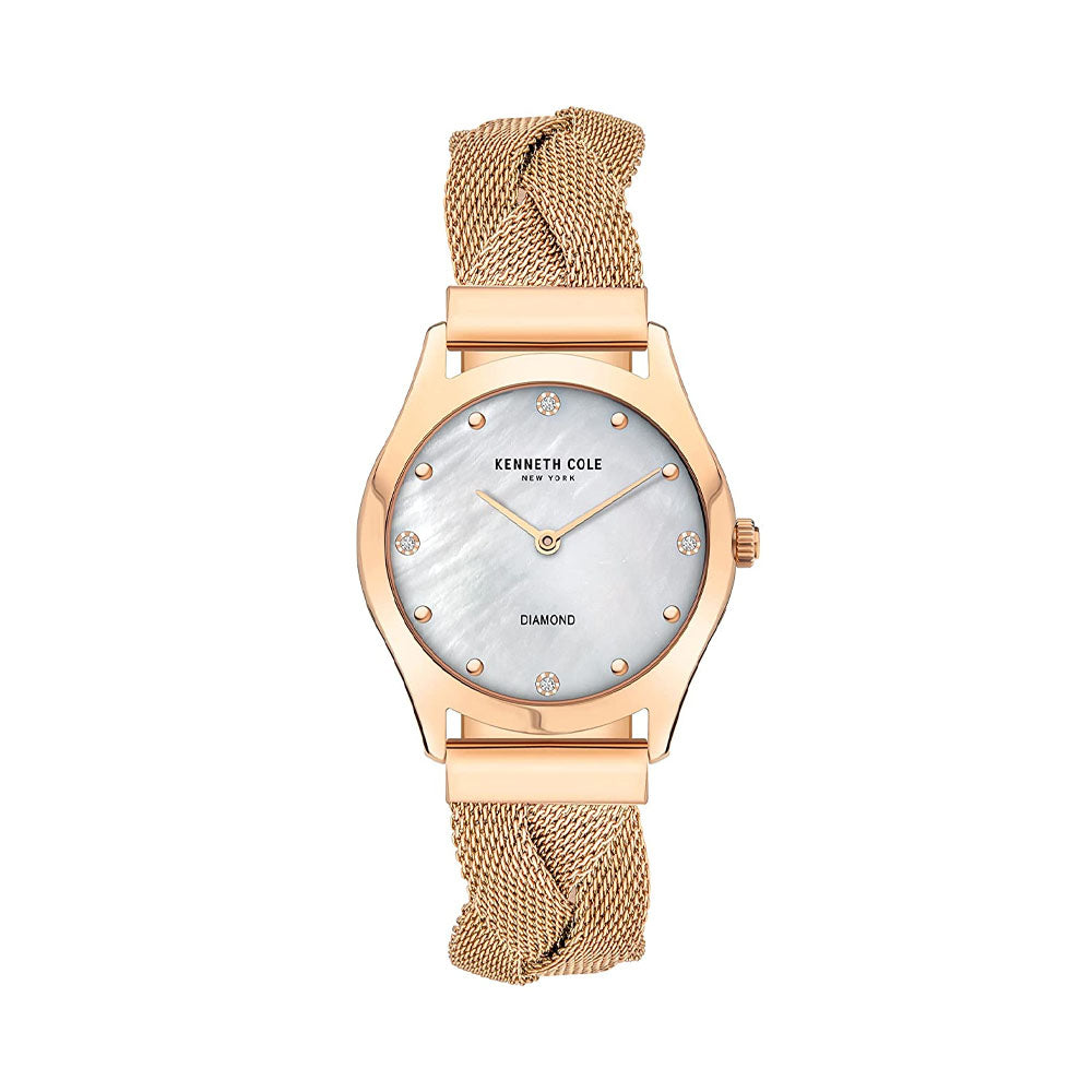 Reflecting the dynamism of modern lifestyles, this women's analog watch from the Modern Classic collection by Kenneth Cole will be a great addition to your collection of watches. Secured by a mineral glass, the mother of pearl round dial is housed in a 34 mm case. It exhibits plain two...