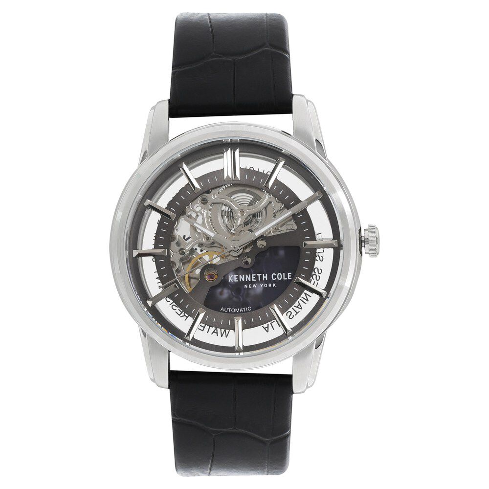 Kenneth Cole Automatic Grey Dial Leather Strap Watch for Men-NCKC15116001MN