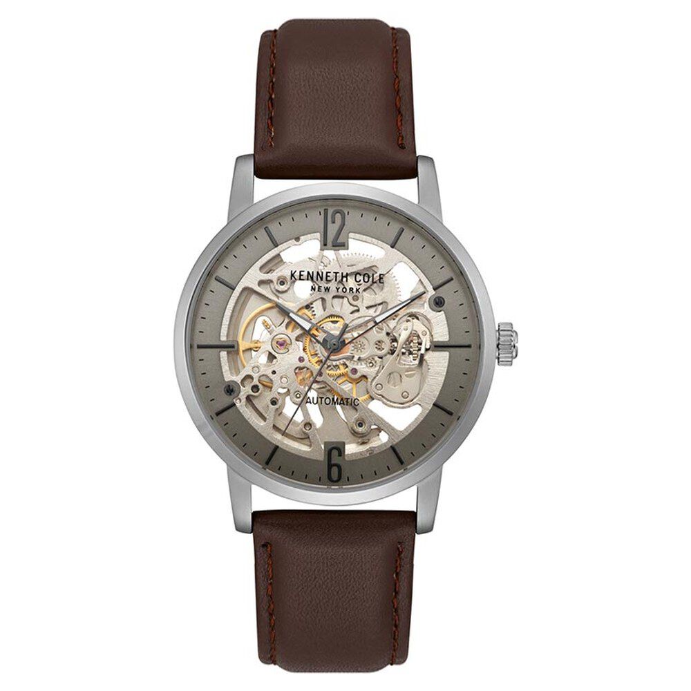 Kenneth Cole Automatic Grey Dial Leather Strap Watch for Men-NCKC50054001MN