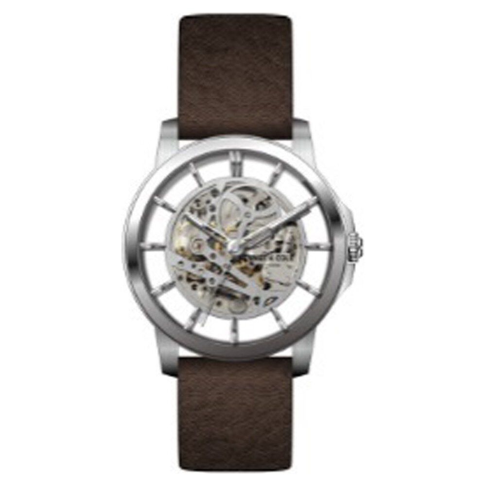 Kenneth Cole Automatic Silver Dial Leather Strap Watch for Men-NCKC50227004MN