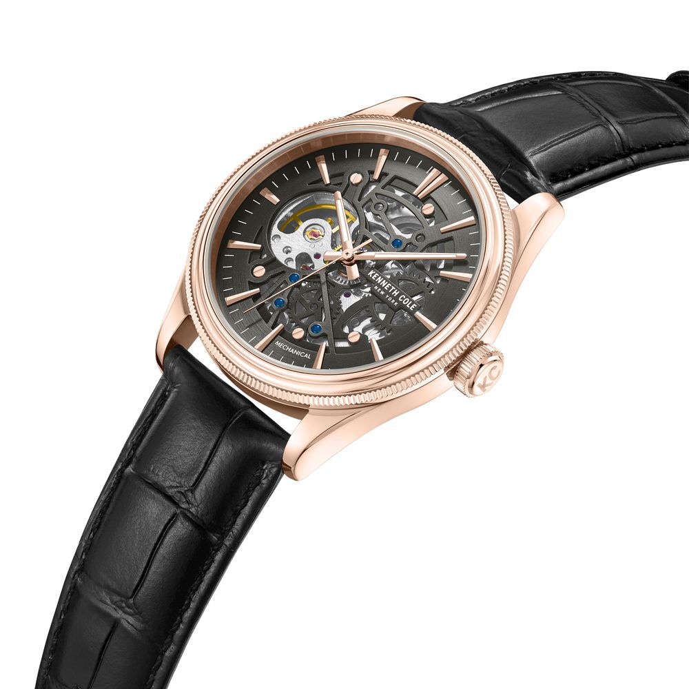 Kenneth Cole Mechanical Hand Wound Analog Mechanical Grey Dial With Black Leather Strap Watch For Men KCWGE0048904MN