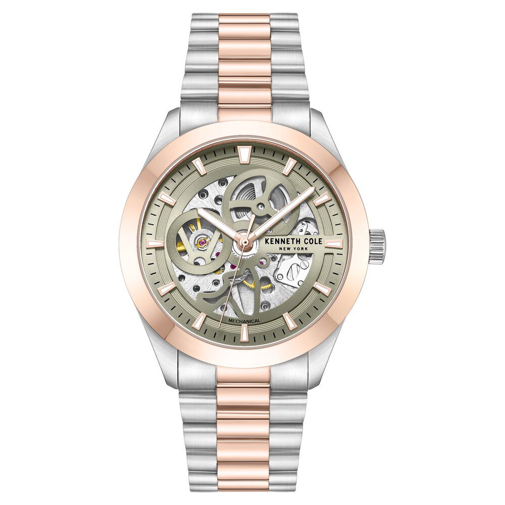 Kenneth Cole Mechanical Hand Wound Analog Mechanical Grey Dial With Two Toned Stainless Steel Strap Watch For Men KCWGL0046702MN