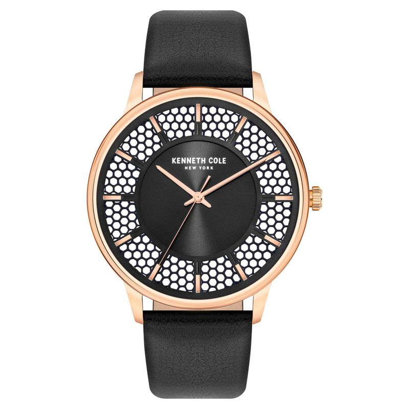 Kenneth Cole Quartz Analog Black Dial Leather Strap Watch for Men