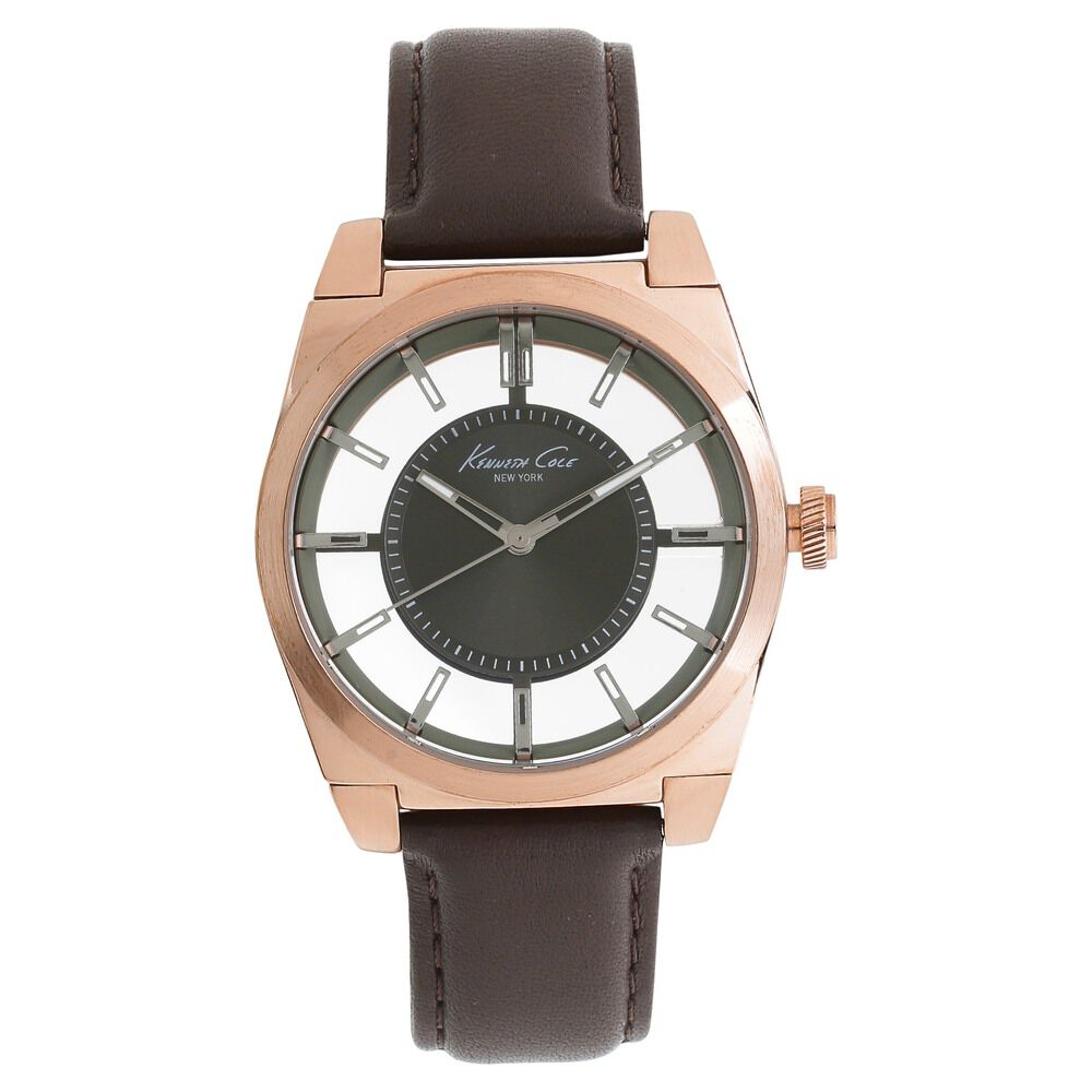 Kenneth Cole Quartz Analog Grey Dial Leather Strap Watch for Men-NCKC10027842MN