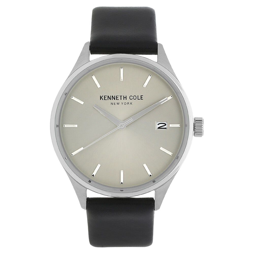 Kenneth Cole Quartz Analog Grey Dial Leather Strap Watch for Men-NCKC10029304MN