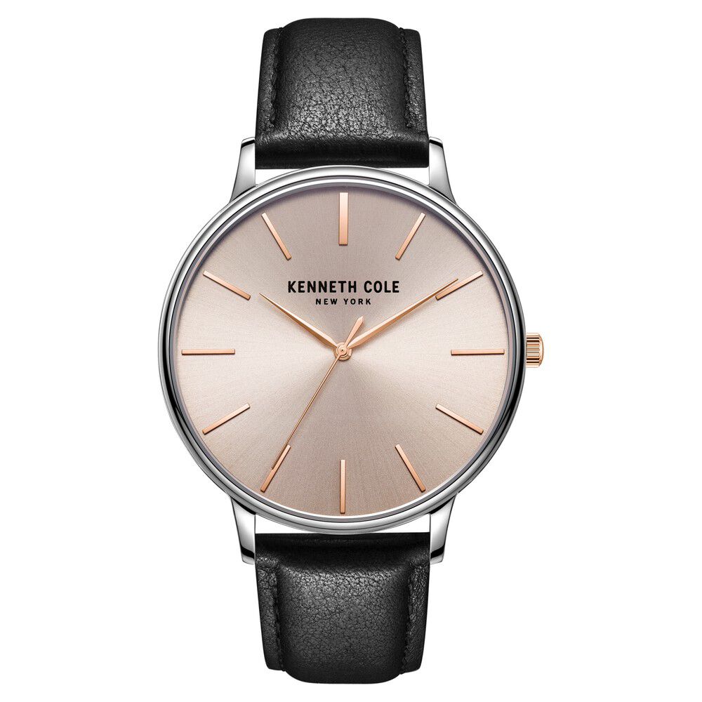 Kenneth Cole Quartz Analog Grey Dial Leather Strap Watch for Men-NCKC51111001MNW