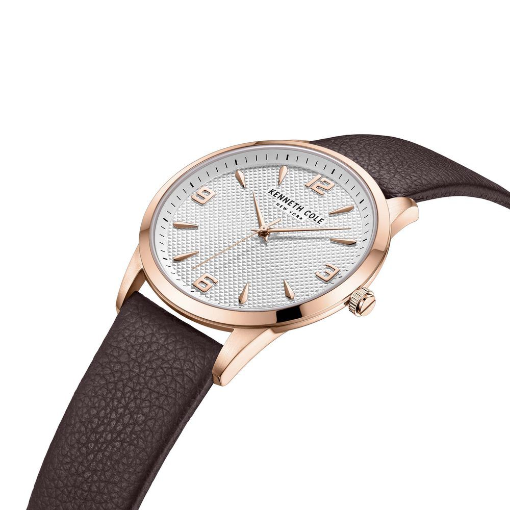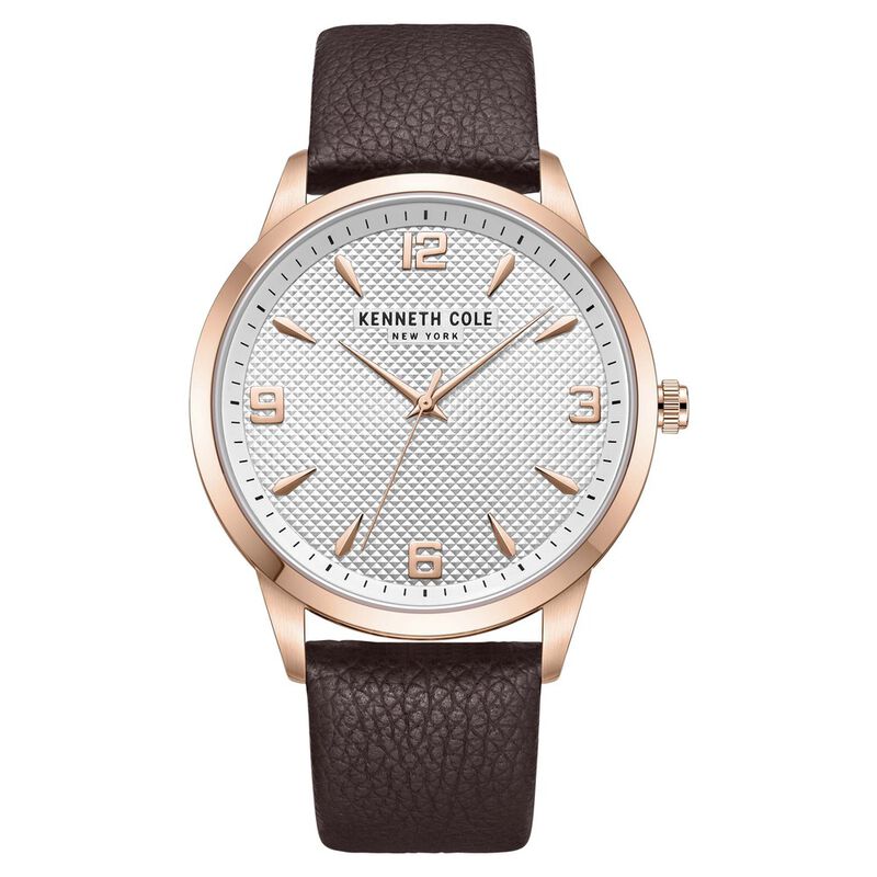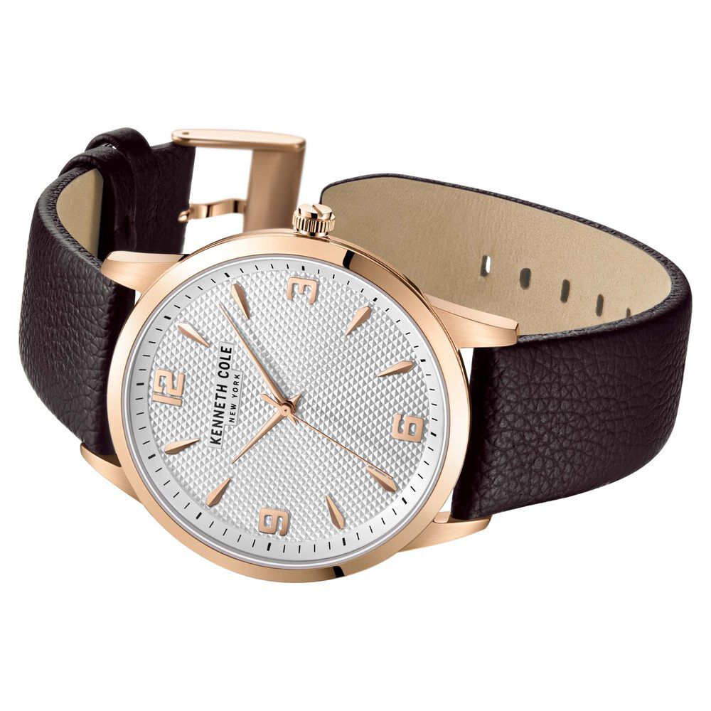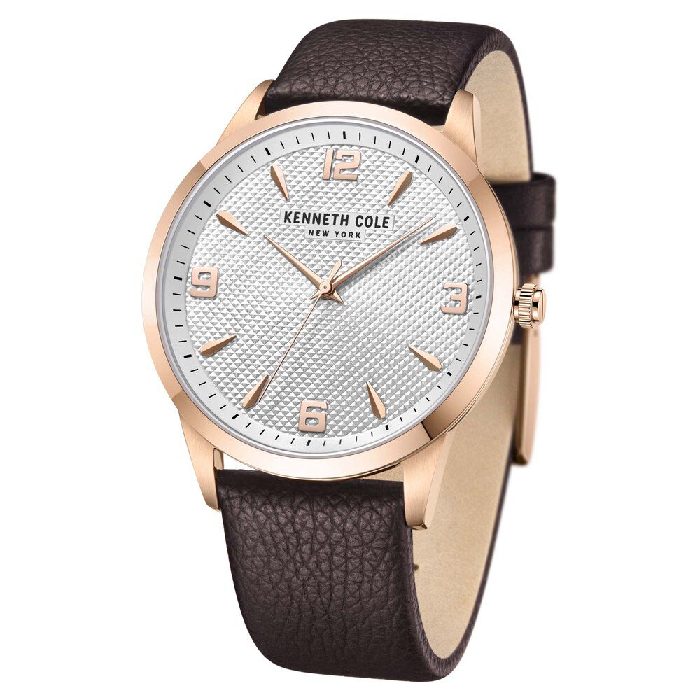 Kenneth Cole Quartz Analog Silver Dial Leather Strap Watch for Men