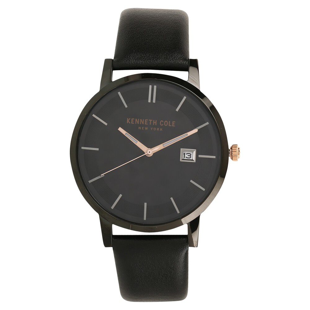Kenneth Cole Quartz Analog with Date Black Dial Leather Strap Watch for Men-KC15202004MN