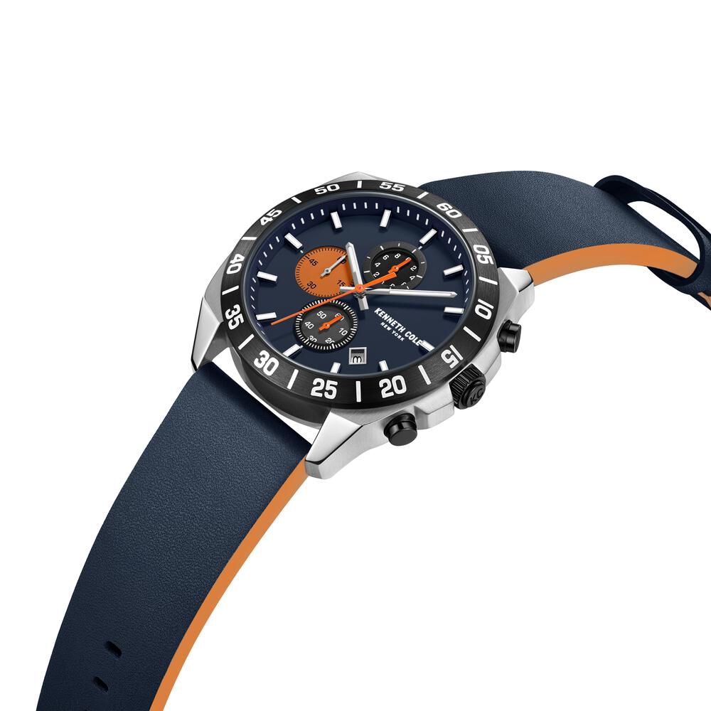 Kenneth Cole Quartz Chronograph Blue Dial Leather Strap Watch For Men