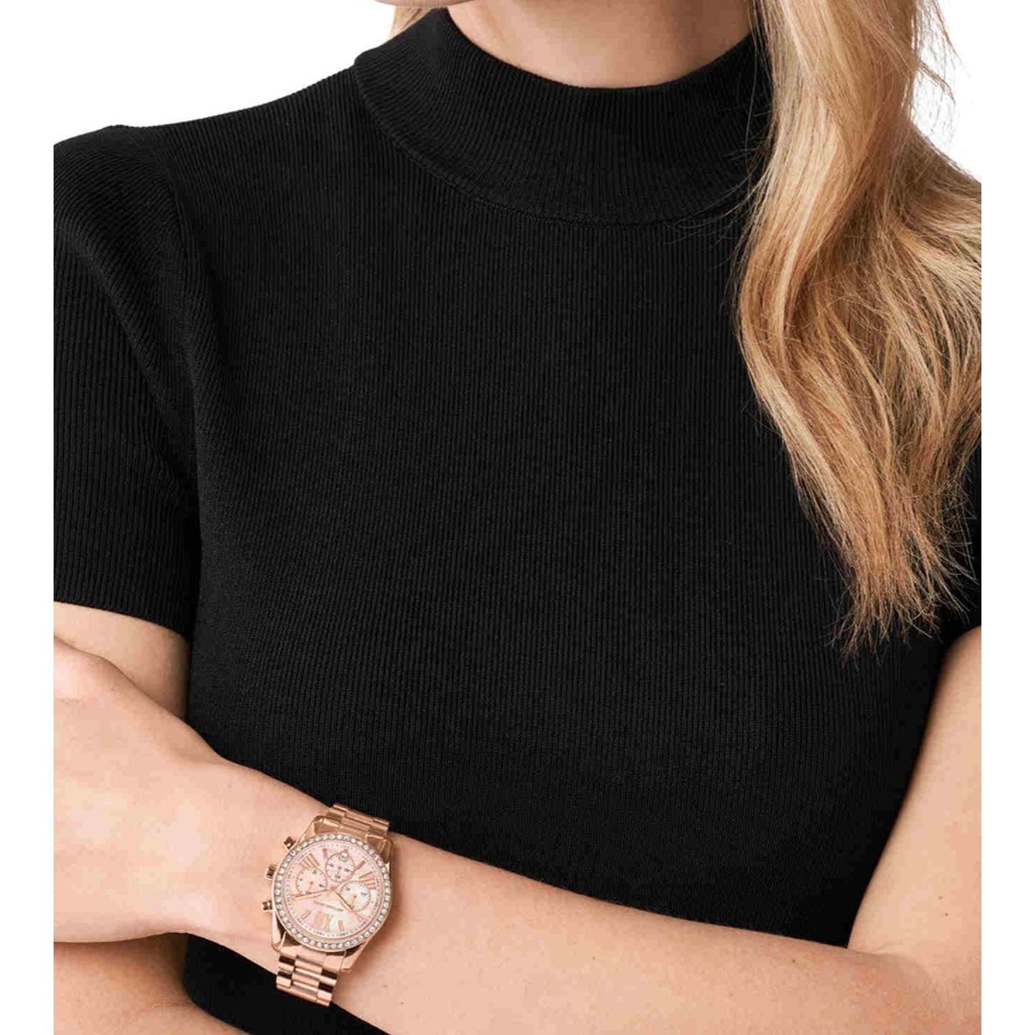 Our 38mm Lexington gets a luxurious update with a new oversized-stone topring. Featuring a Blush Mother of Pearl dial on a rose gold-tone bracelet, this watch can be dressed up or down to go with any style this season.