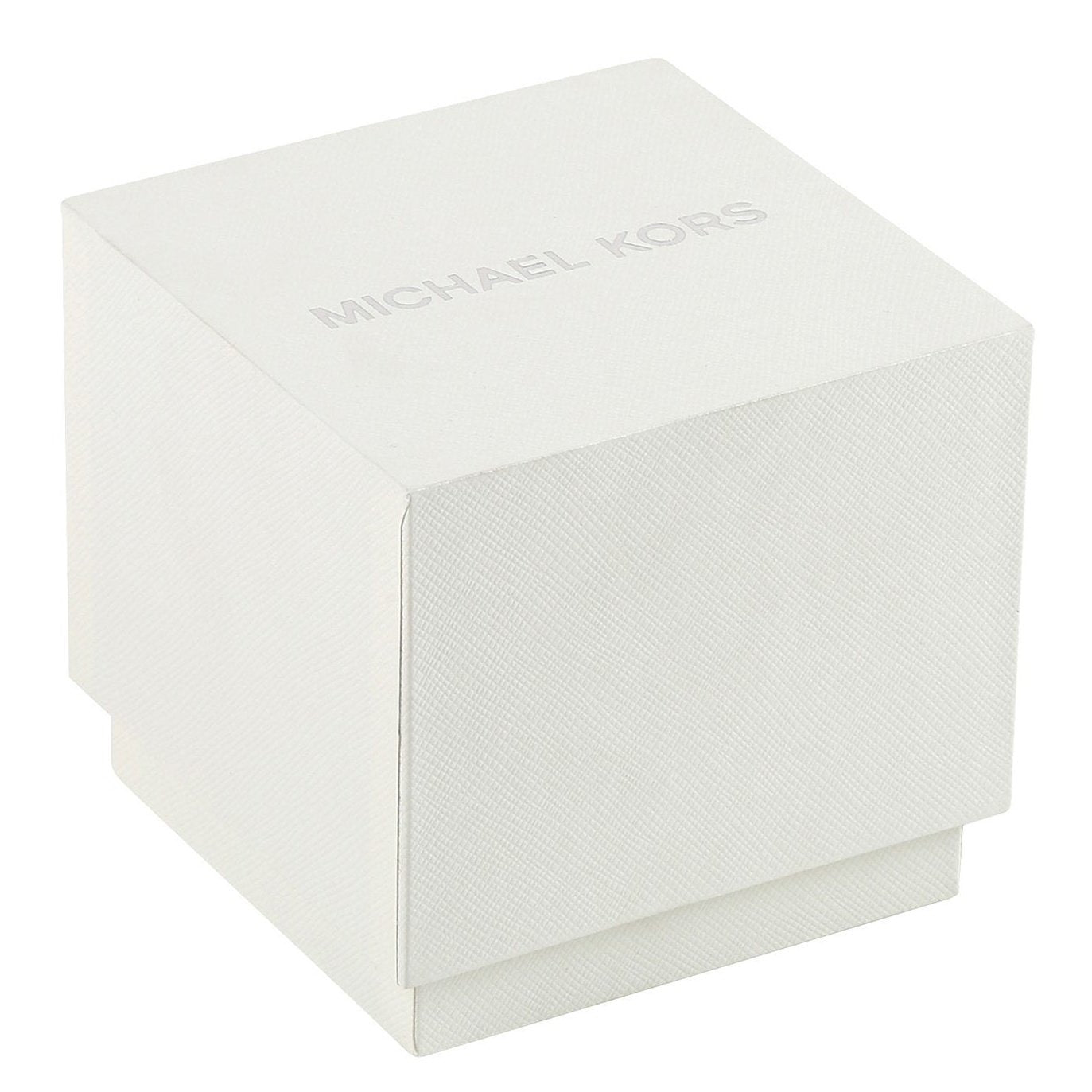 This ethereal women's chronograph watch by MICHAEL Michael Kors has a fine dial with three sub-dials. The sleek tone hands and the crystal hour markings are complemented by the rose gold stainless steel case which is embellished with crystals. The dial is paired with a simple three-link, rose gold, stainless...