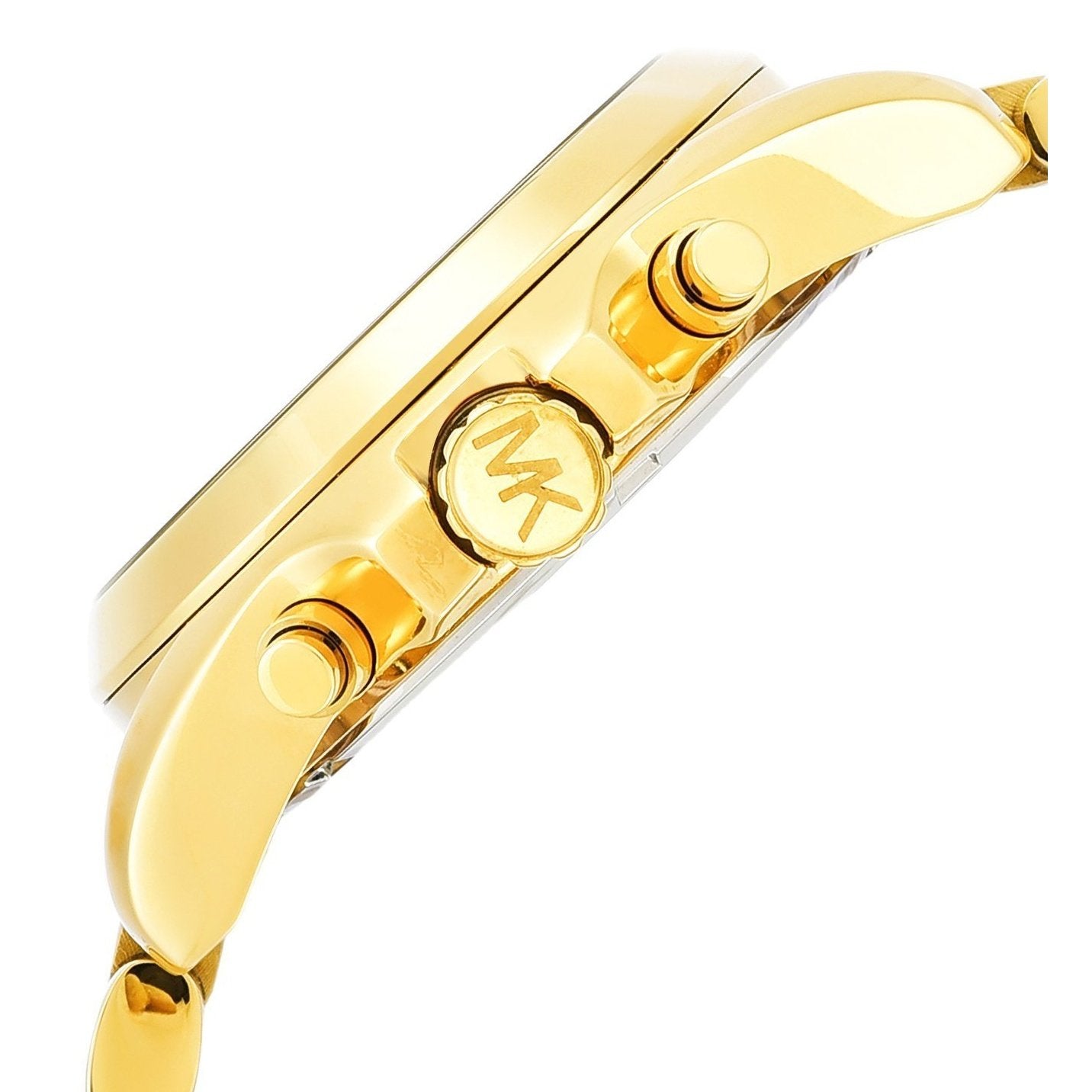 This chronograph watch by MICHAEL Michael Kors is made to compliment the poised look of a powerful woman. While the three-link gold stainless steel bracelet, secured using a deployant clasp maintains the simplicity, the stunning round dial encased in a gold stainless steel case steals the show. The gold dial...