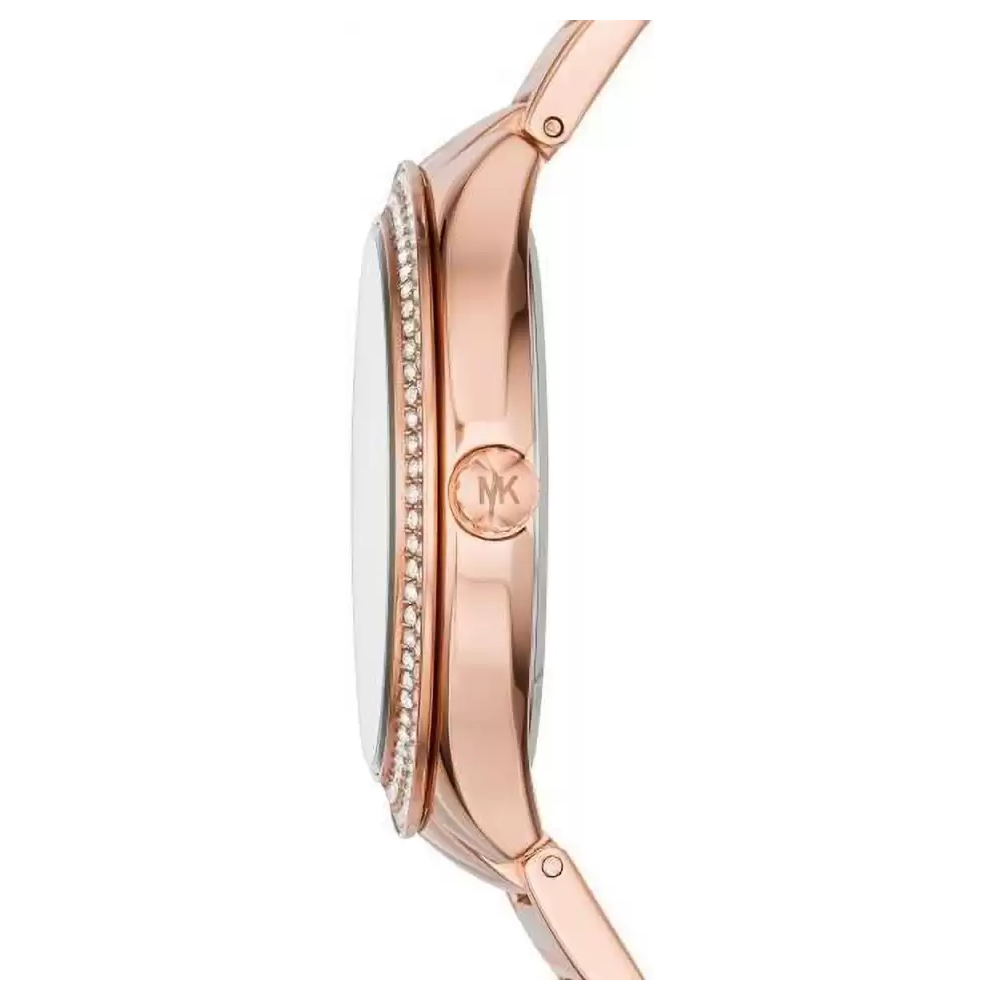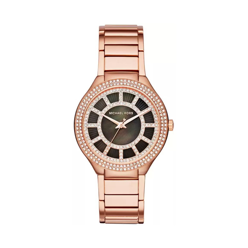 Rose gold-tone stainless steel case. Rose gold-tone stainless steel bracelet. Black mother of pearl dial. Quartz movement. Water resistant 50 meters. Case 37 mm. Michael Kors watches lend your rotation a fresh vibe whether you're at the office or out on the town. From leather strap to stainless steel watches,...