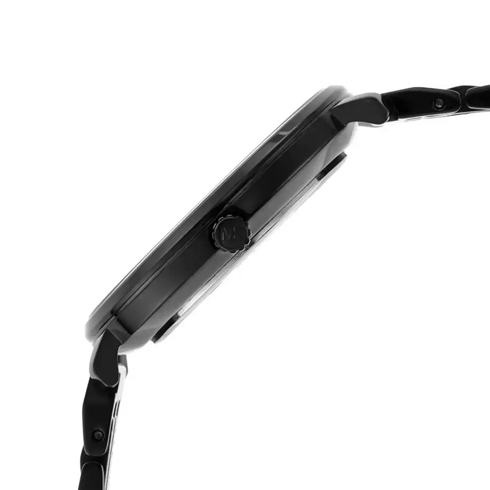 Dial Color: Black, Case Shape: Round, Dial Glass Material: Mineral Band Color: Black, Band Material: Stainless Steel Watch Movement Type: Quartz, Watch Display Type: Analog Case Material: Stainless Steel, Case Diameter: 38 millimeters, Stainless Steel Bezel Water Resistance Depth: 50 meters, Deployment Clasp Recommended for customers looking for a large...