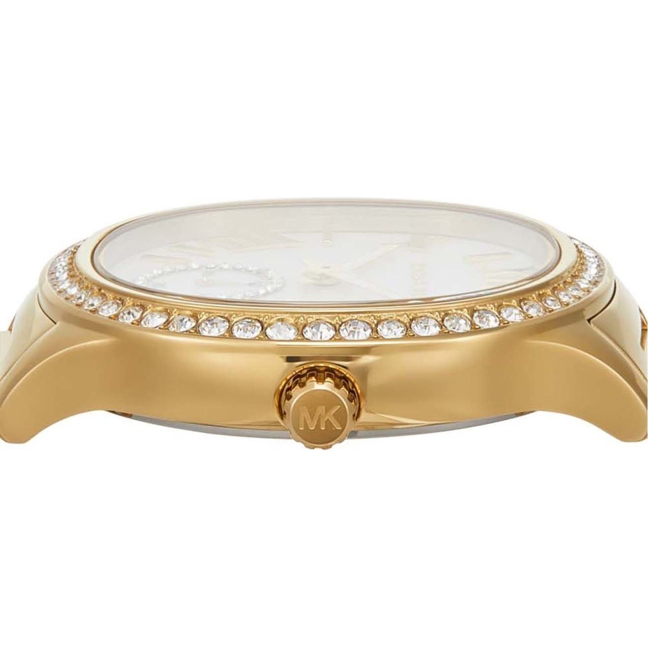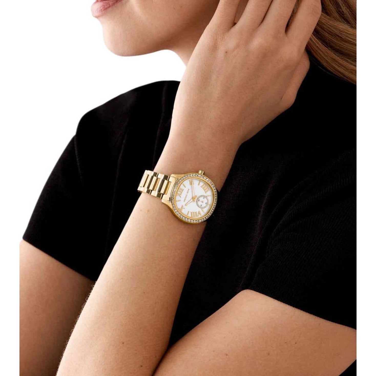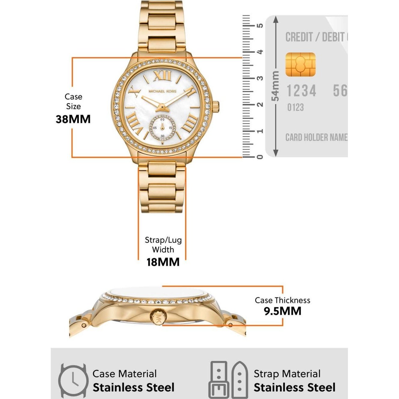 Experience perfection, one second at a time with this wristwatch from Michael Kors. It features a Mother-of-pearl dial. The watch dial is protected with mineral glass and is water resistant up to 50 m.