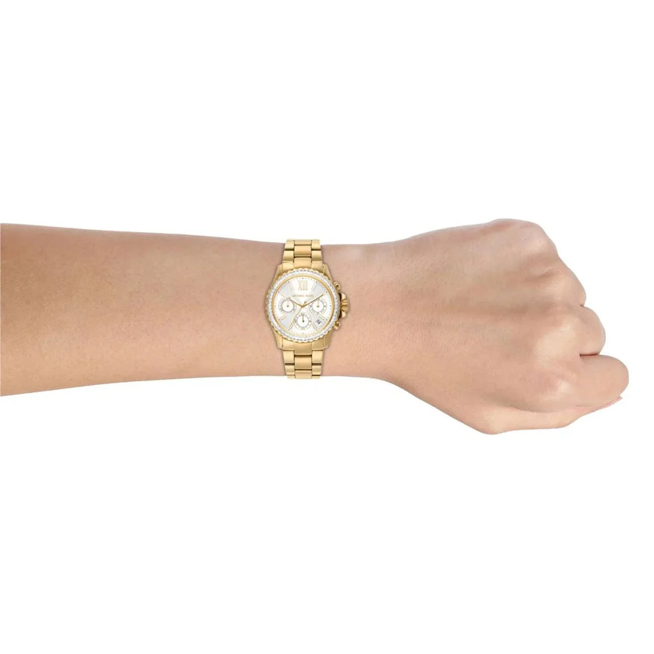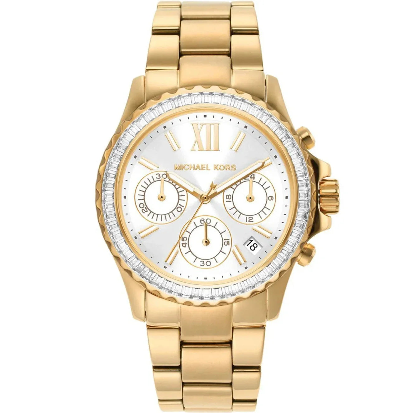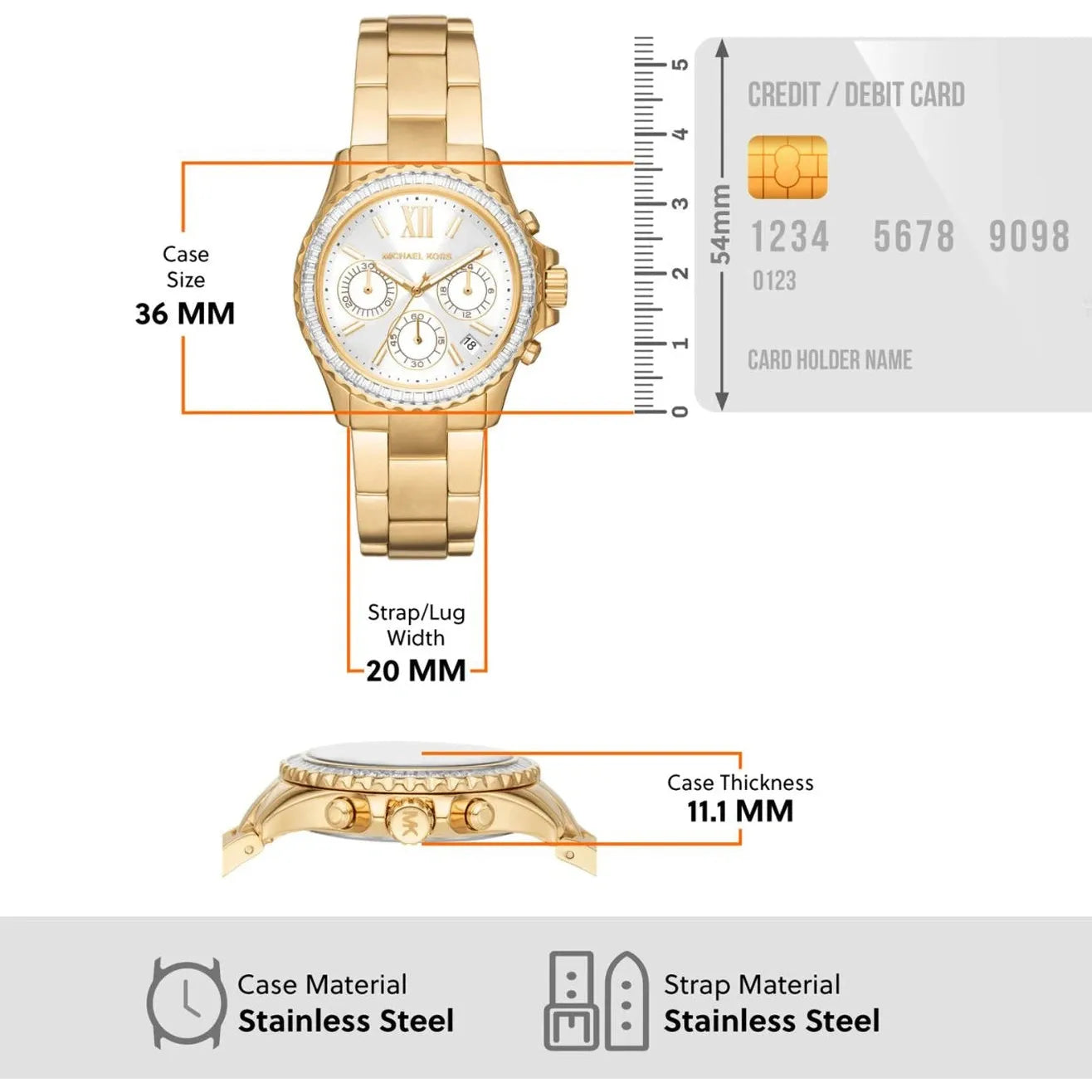Expertly crafted by Michael Kors, the iconic Everest watch now comes in a 36 mm size with a stunning dial. Featuring a clear baguette stone topping on a charming case and bracelet, this glam sports watch is perfect for making a statement every day. Elevate your style with this timeless...