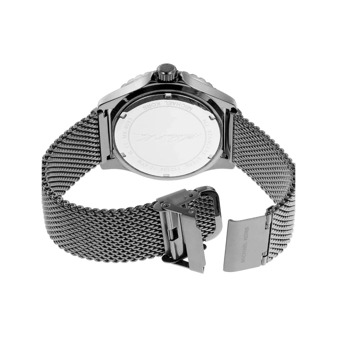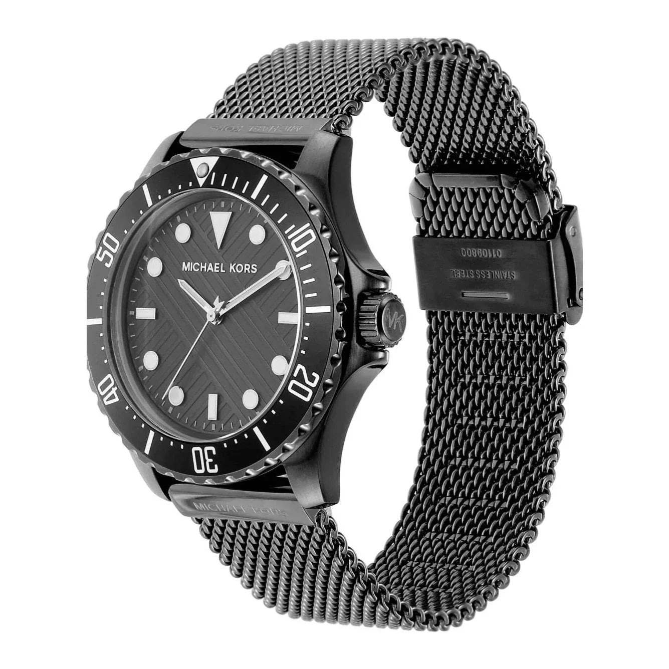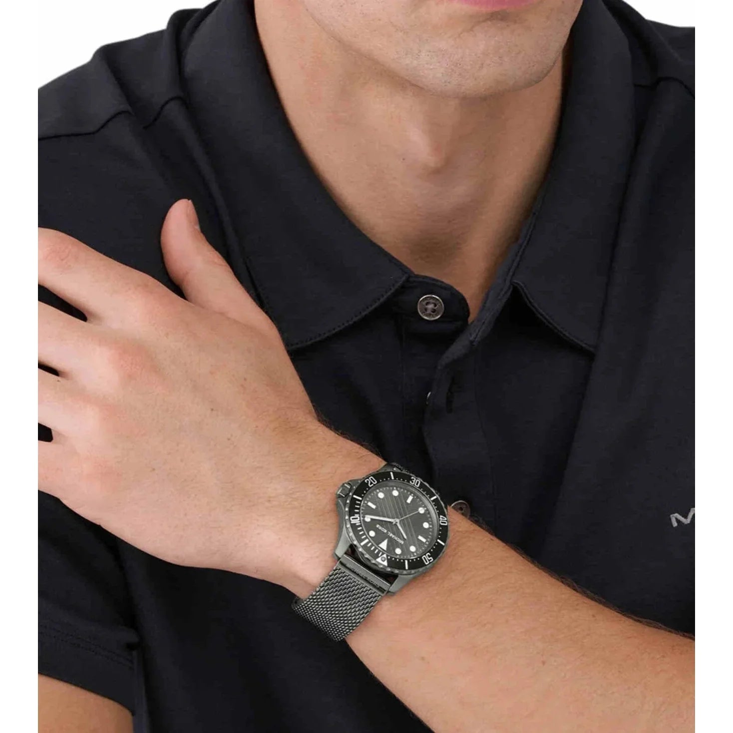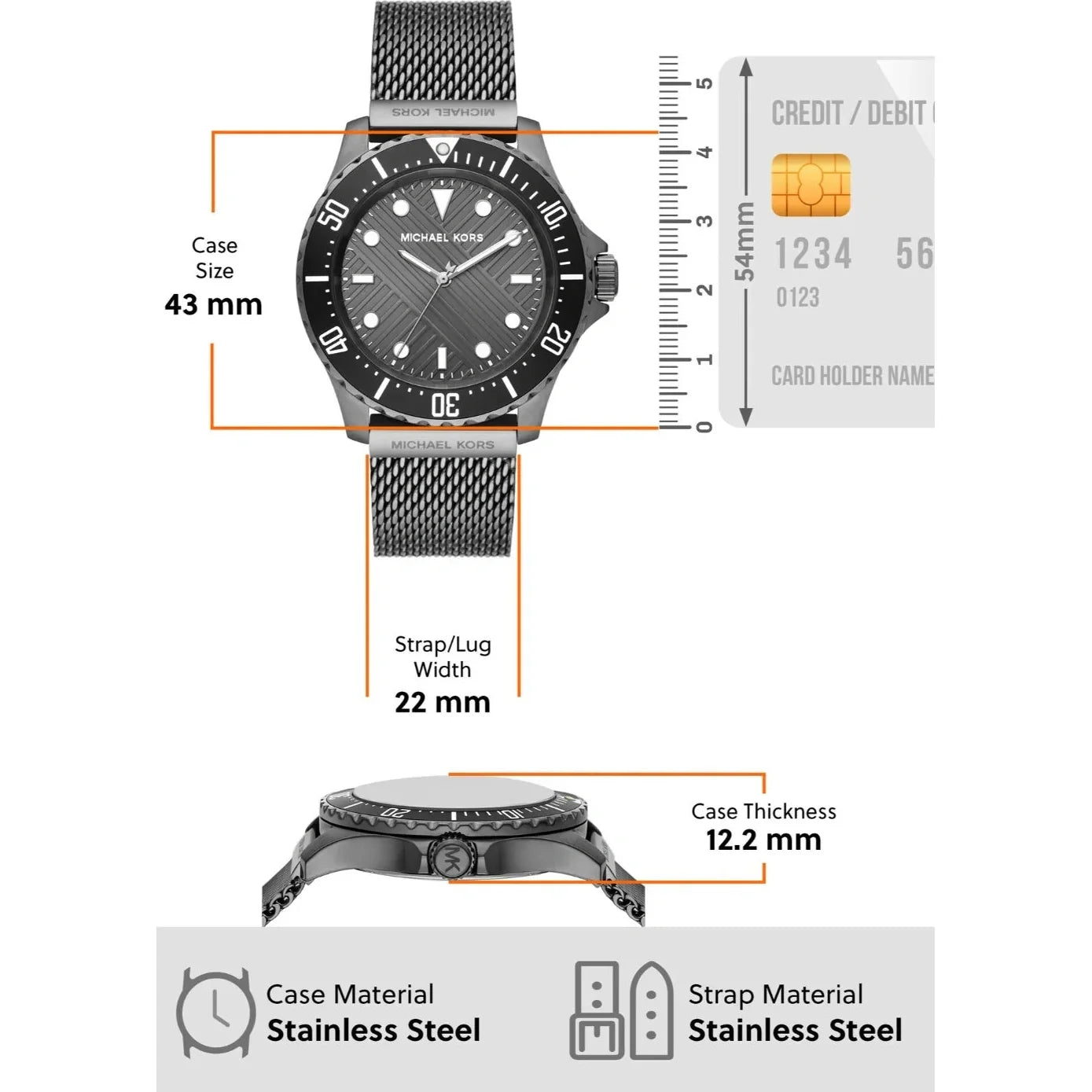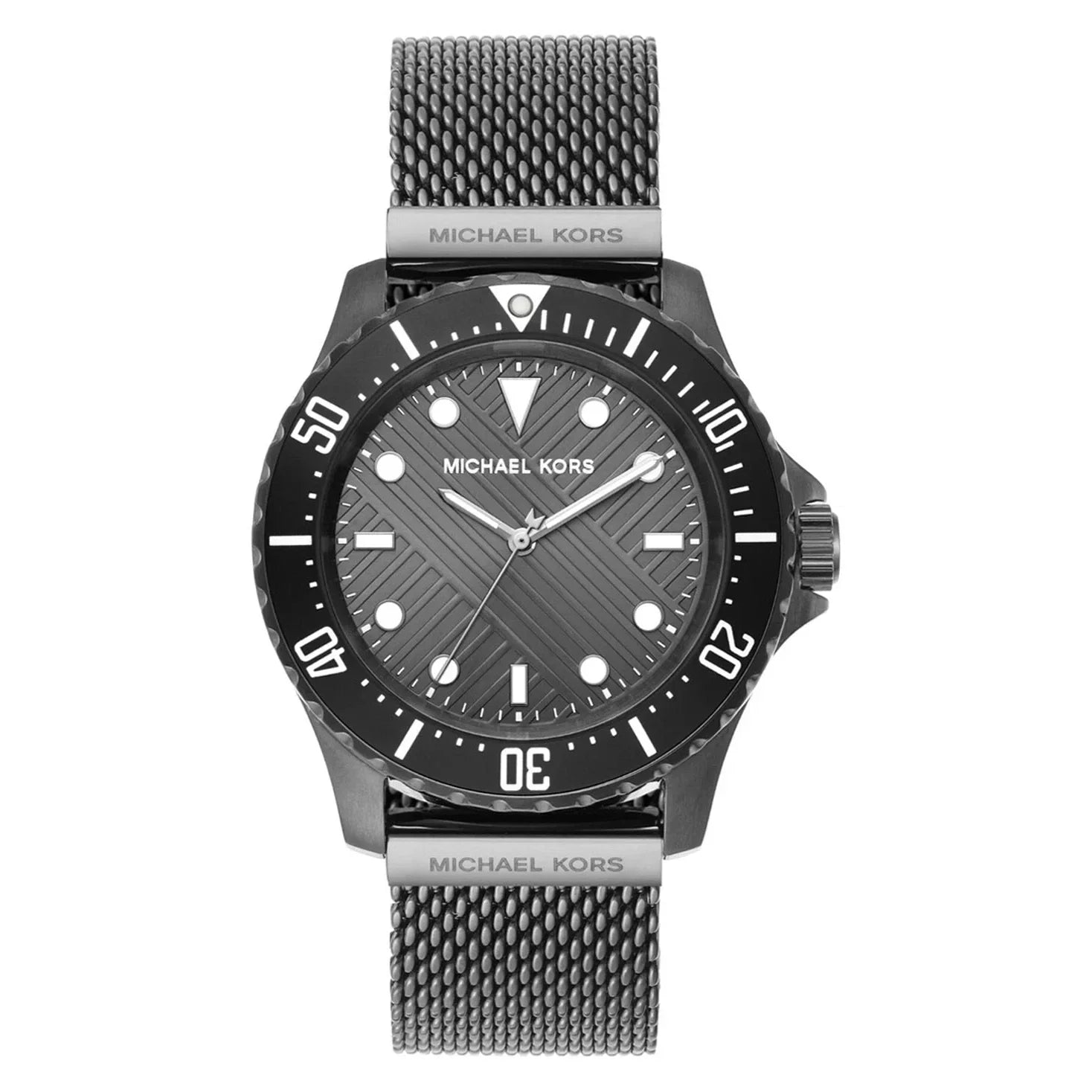 Elevate your style with Michael Kors' 43mm Everest watch. Crafted with a gunmetal mesh bracelet and a mineral glass-protected grey dial, this watch exudes a sleek and sophisticated look. The three-hand movement and deployment clasp make it both functional and fashionable. Perfect for any occasion.