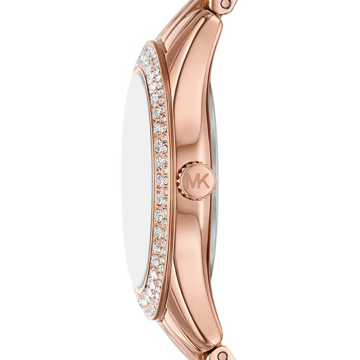 The MK4845 Harlowe watch features a stunning mother-of-pearl dial paired with a rose gold-tone stainless steel bracelet. Its three-hand movement provides accurate timekeeping while enhancing your style quotient. Designed for elegance and versatility, this watch is perfect for both casual and formal occasions. The durable mineral glass covers ensure longevity...