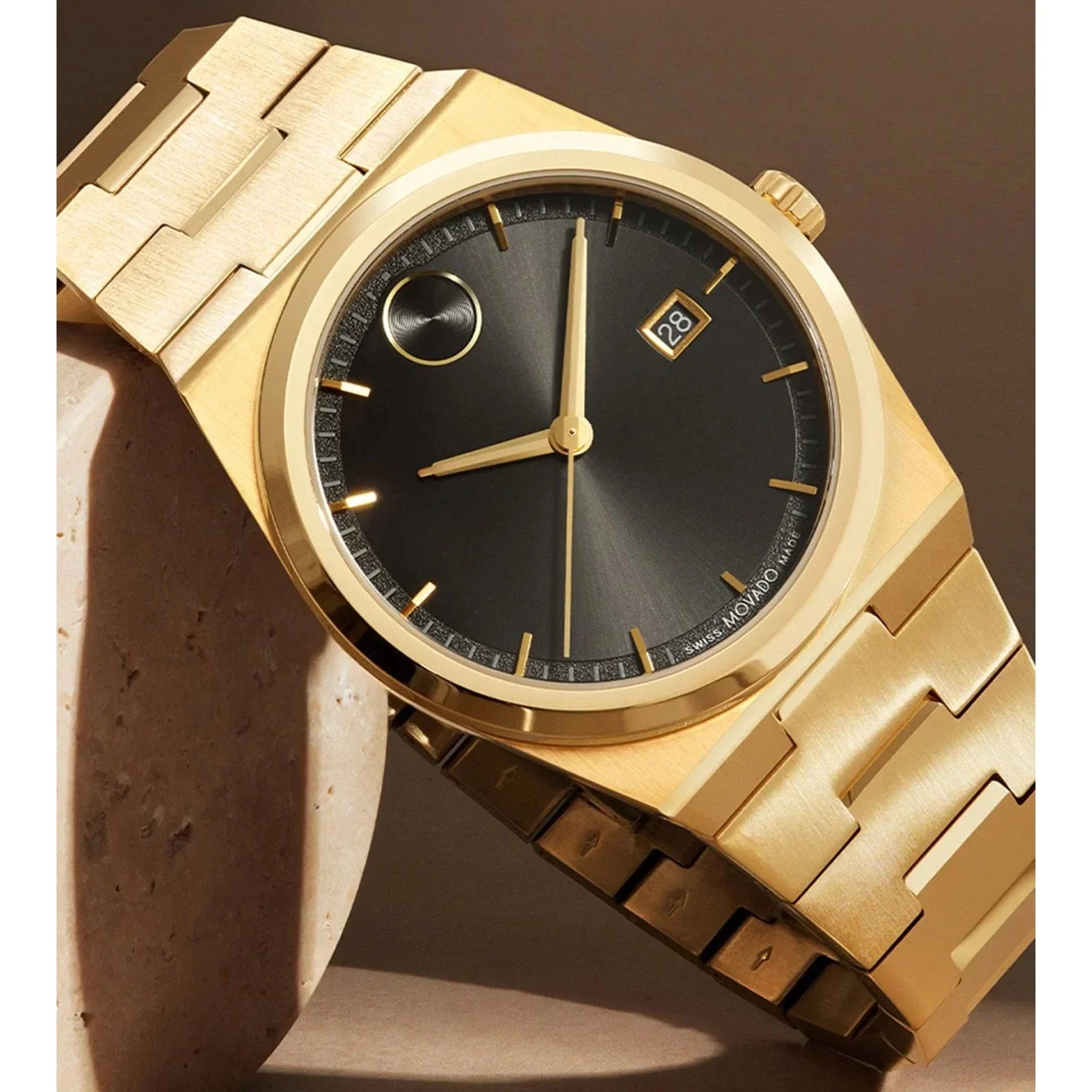 Experience the timeless elegance of Movado with their iconic Men's Watch. Founded in 1881, this Swiss brand boasts over 100 patents and 200 international awards for its modern and innovative designs. The bold stainless steel straps elevate the luxe look of this timepiece.