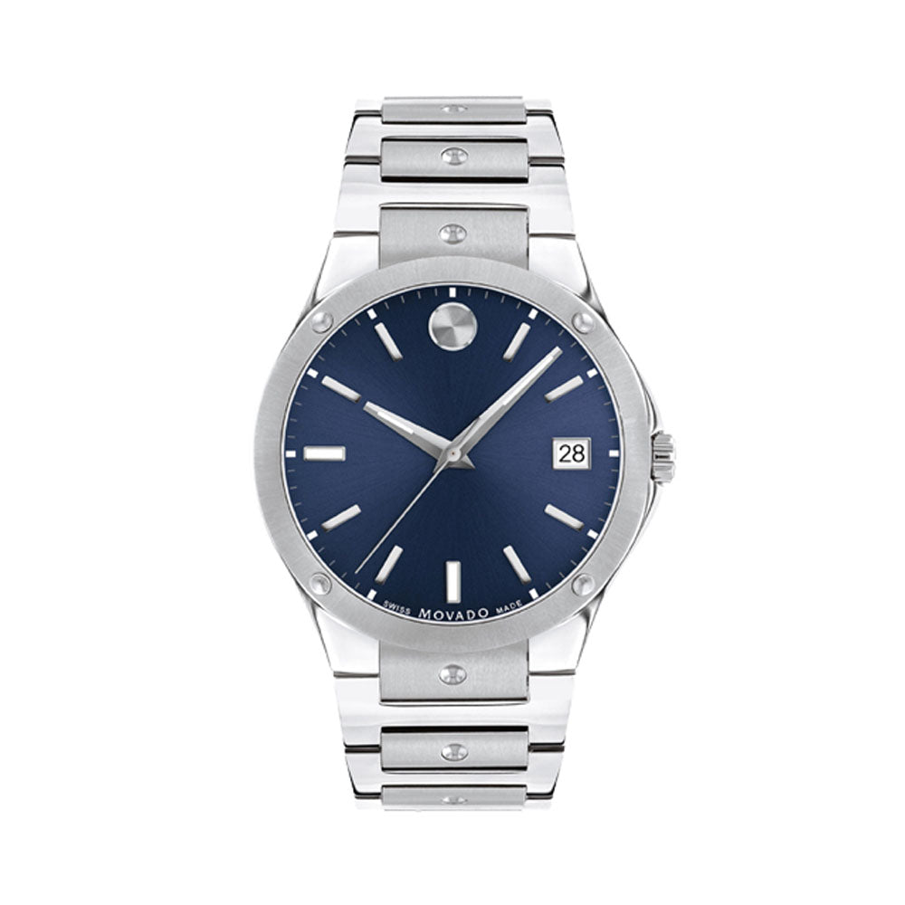 Movado 0607513 S.E. Swiss Stainless Blue Dial Date Watch