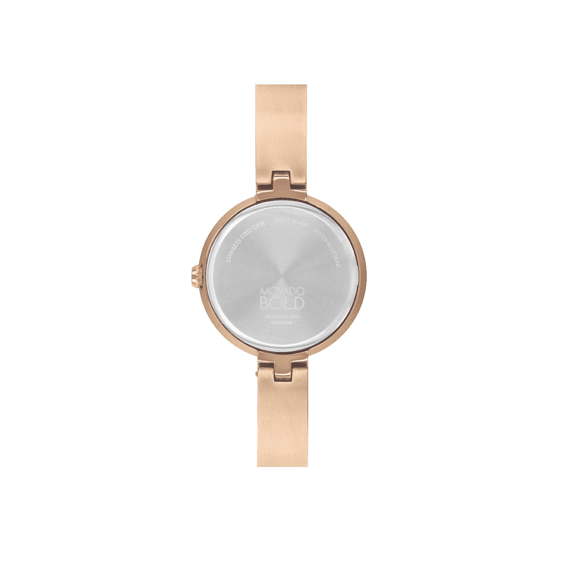 Movado BOLD, 28mm pale rose gold ion-plated stainless steel case & bangle with a pale rose gold toned mother-of-pearl dial. Mother-of-Pearl dials may vary in color as each piece is unique making every watch one of a kind.