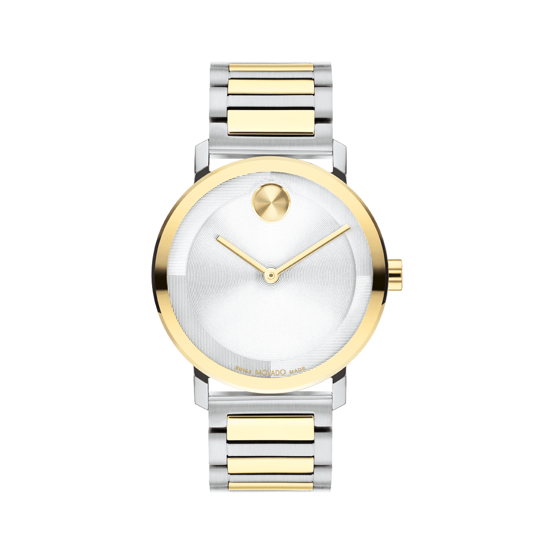The evolution of modern design with a sharp look and elevated feel. This mix-metal timepiece is crafted from stainless steel and pale yellow goldtone ion-plated stainless steel. It features a statement-making 40mm case that houses a captivating micro-textured silvertone dial with a glossy lacquer overlay, slim goldtone hands, and our...