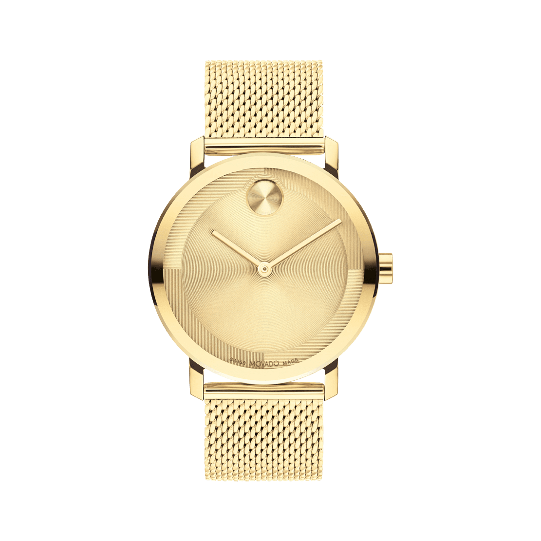The evolution of modern design with a sharp look and elevated feel. Crafted from pale yellow goldtone ion-plated stainless steel, this sleek timepiece features a statement-making 40mm case that houses a captivating micro-textured goldtone dial with a glossy lacquer overlay, slim hands, and our iconic dot motif at 12 o’clock. The matching mesh bracelet completes the design with a minimalist edge.