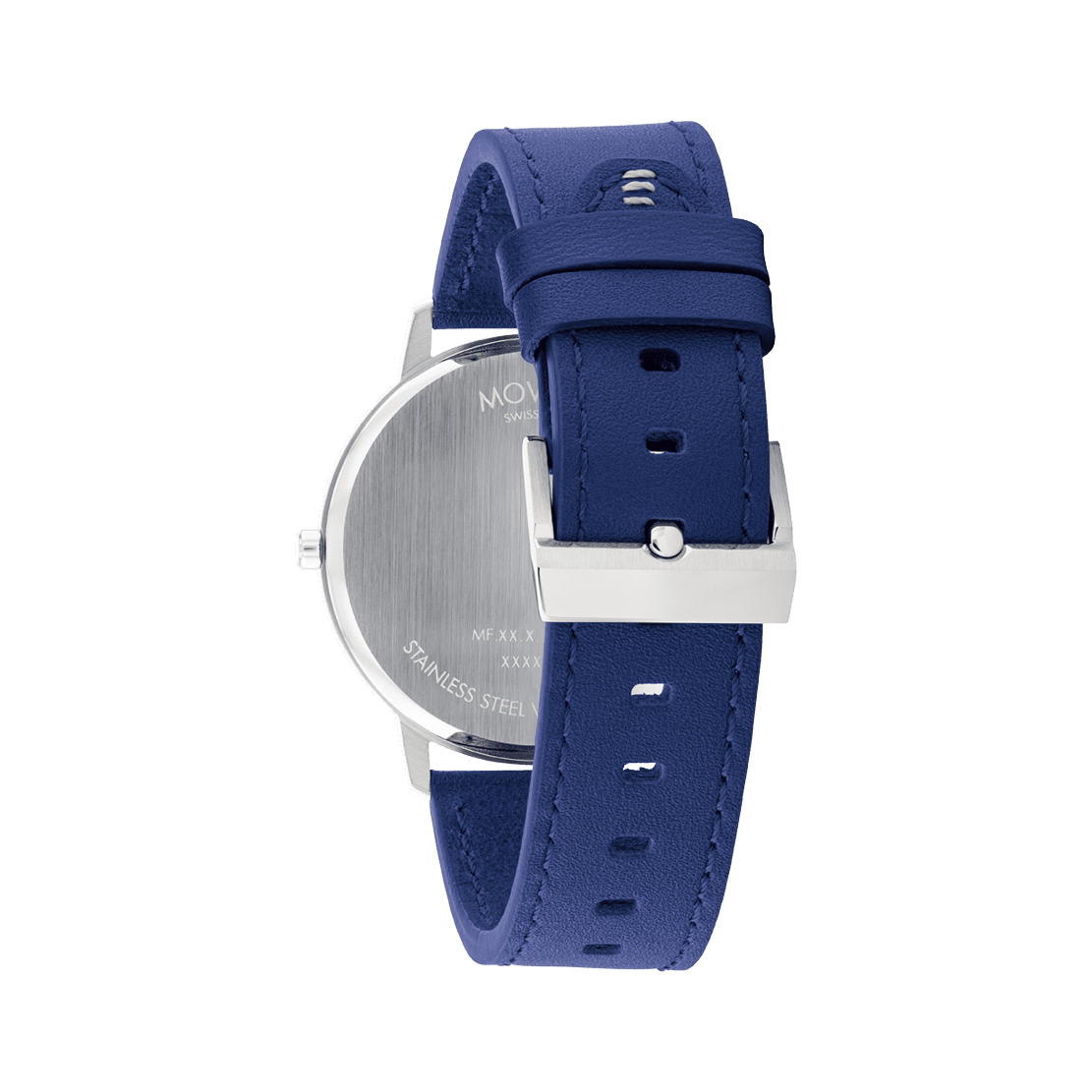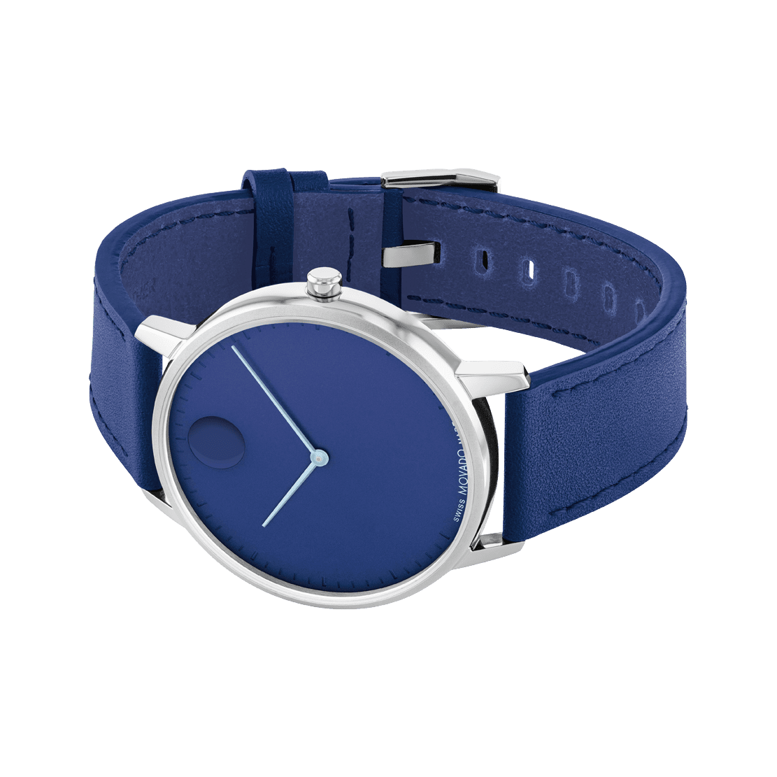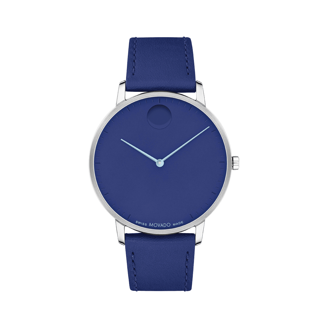 A fresh, fun take on ultra-modern, hyper-minimalist design. Add a pop of color to any look with this vibrant Face watch. Its 41mm stainless steel case houses a cool blue dial with slim green hands and a recessed dot at 12 o’clock. We’ve paired it with a matching blue strap crafted from luxe leather with a buckle closure.