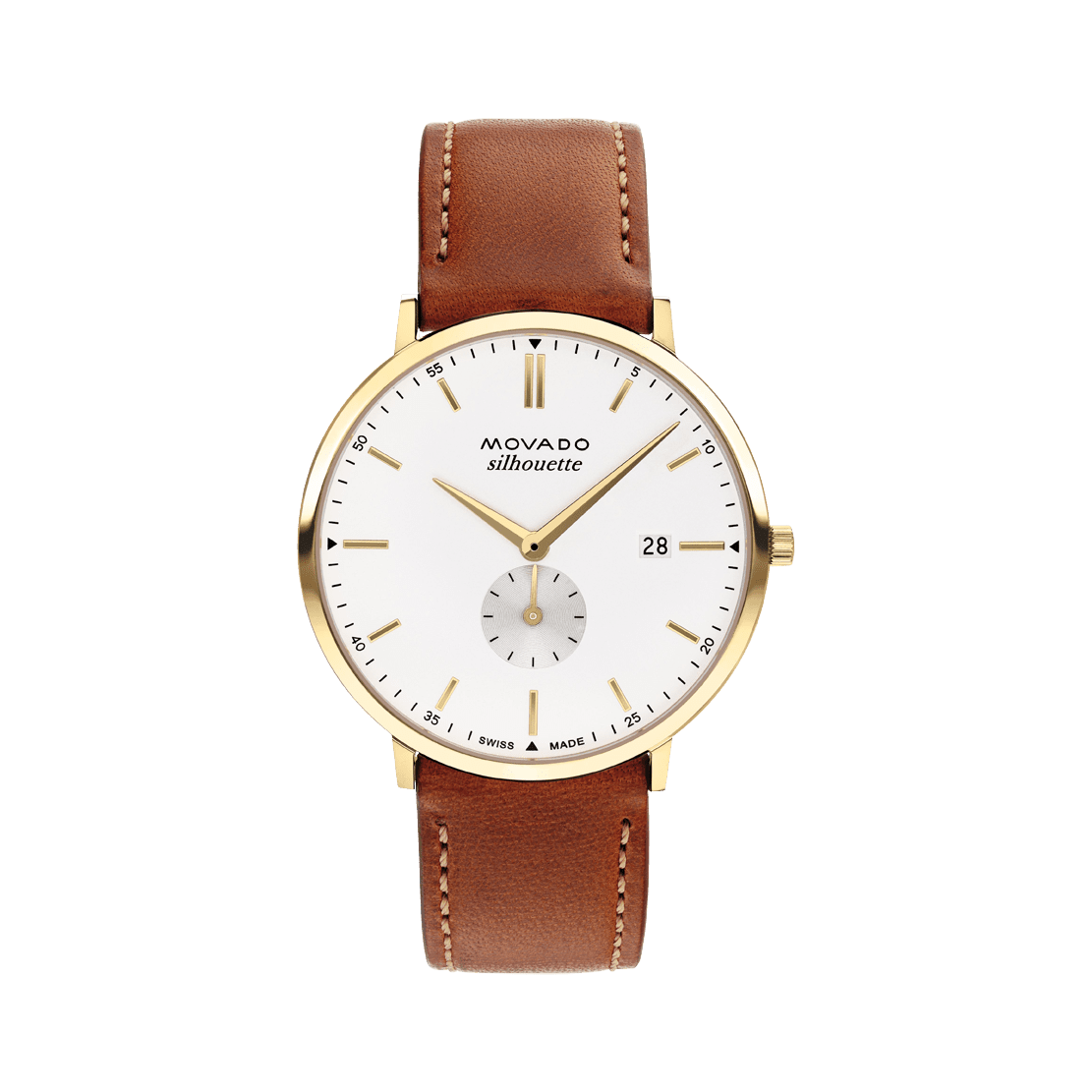 Capture vintage sophistication with this timeless watch. Inspired by our archives, this timepiece features a 40mm case with a gleaming ion-plated yellow gold finish and a luxurious congac top-stitched leather strap with a yellow gold ion-plated stainless steel buckle. Its powder white dial is outfitted with golden accents, printed black...