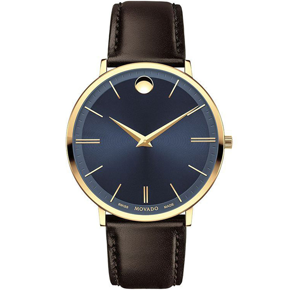 Buy Movado Ultra Slim Round Quartz Blue Dial Men Watch - 607088 | Helios Watch Store