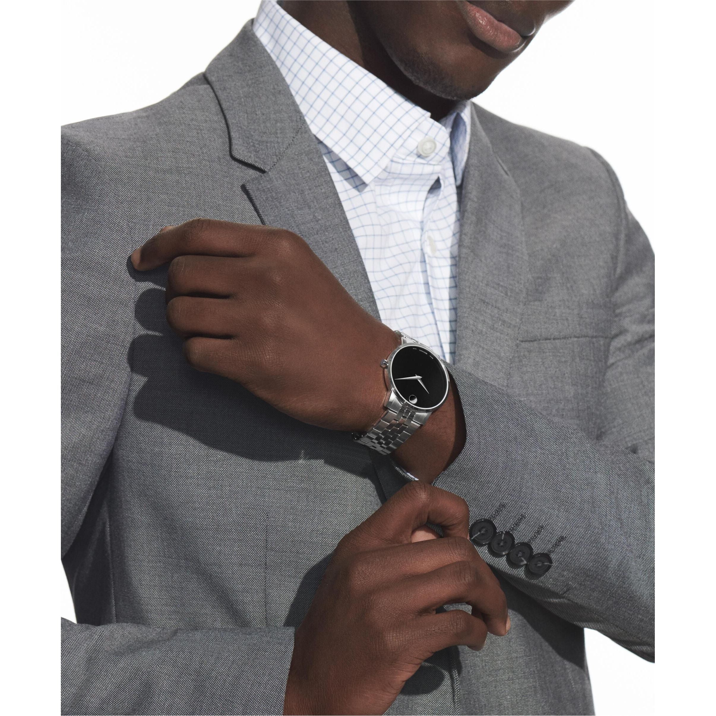 The Movado Museum Classic 0607199 is a sleek and sophisticated men's watch. Featuring a 40 mm stainless steel case and a black Museum dial with a silver-toned dot and hands, this watch exudes elegance. With the added convenience of a stainless steel link bracelet with a deployment clasp, it is...