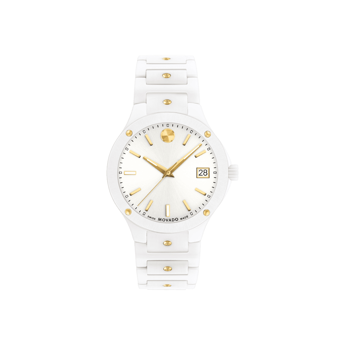 Iconic design meets elevated sporty style. We’ve added a signature touch to this two-tone design with our iconic dot motif displayed in gleaming yellow gold PVD at 12 o’clock and at the concave accents. A true modern classic, this watch is crafted from ultra-contemporary white ceramic and features a classic...