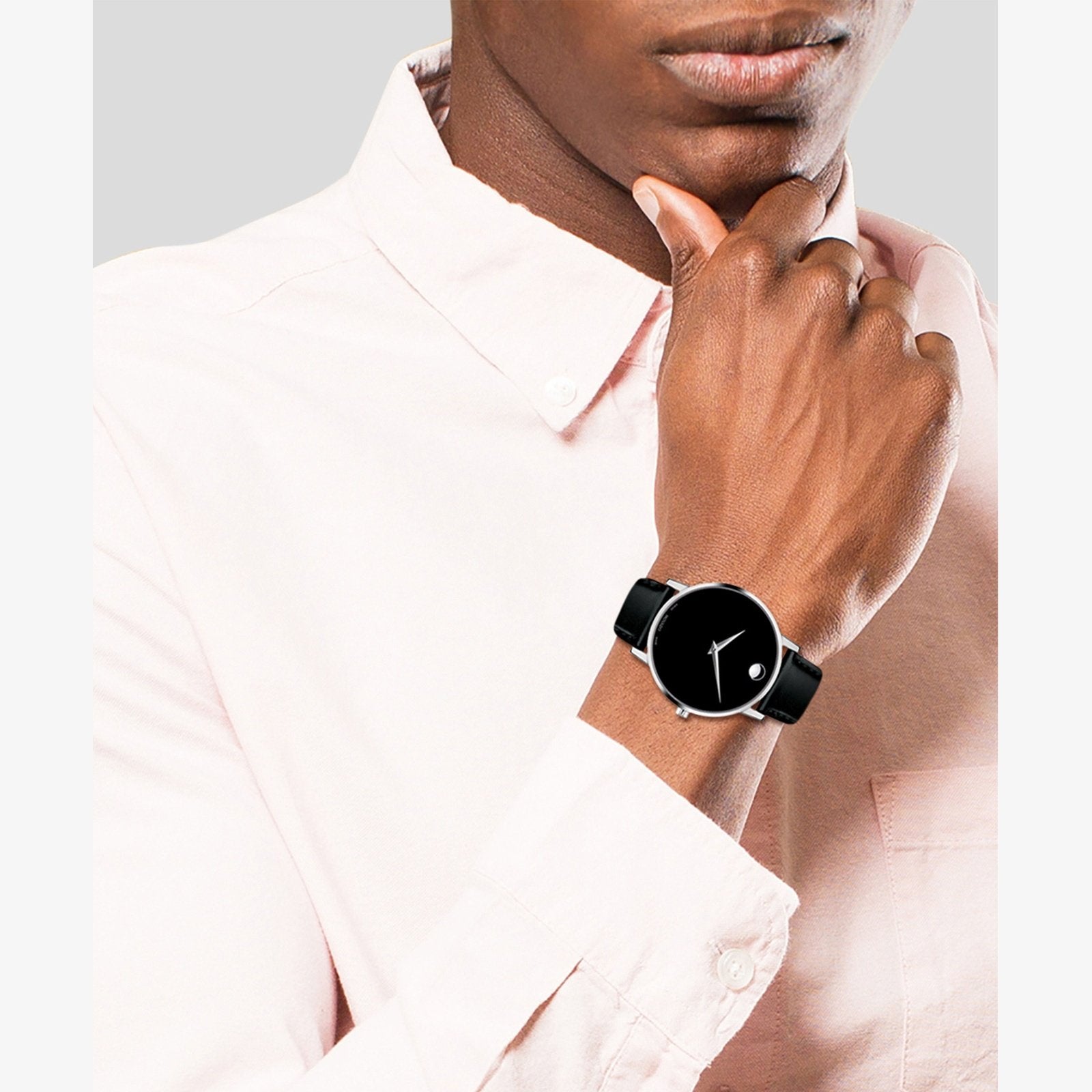 Go to the shopMen's Museum Classic watch, 40 mm stainless steel case, black Museum dial with silver-toned dot and hands, black calfskin strap with stainless steel buckle.