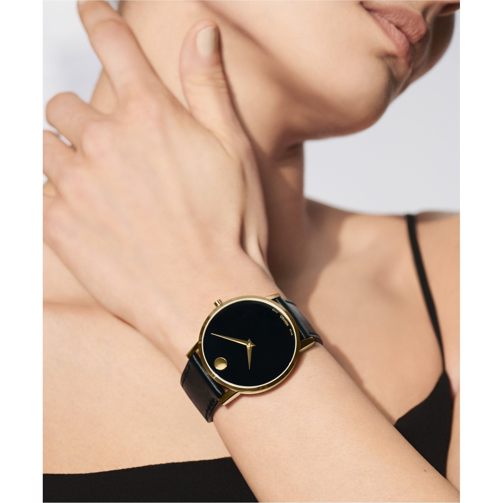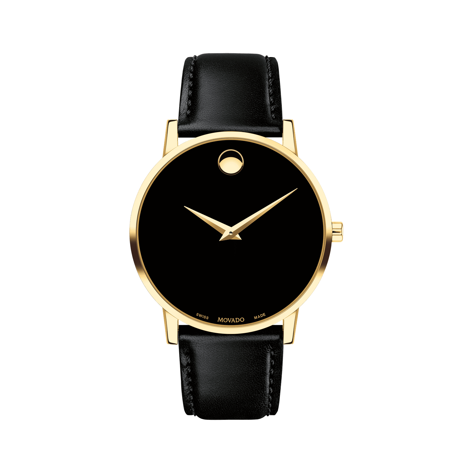 Go to the shopMen's Museum Classic watch, 40 mm yellow gold PVD-finished stainless steel case, black Museum dial with yellow gold-toned dot and hands, black calfskin strap with stainless steel buckle.