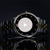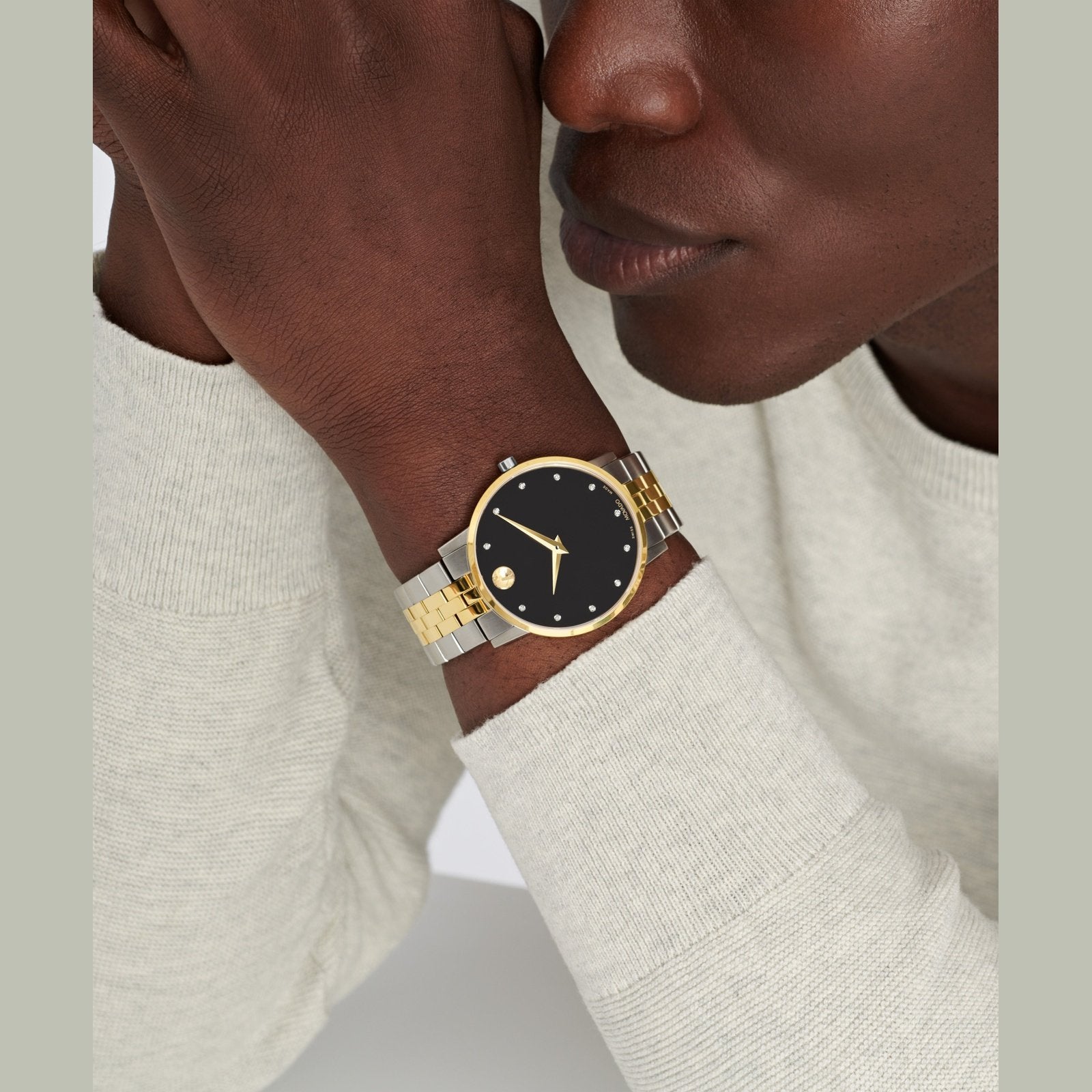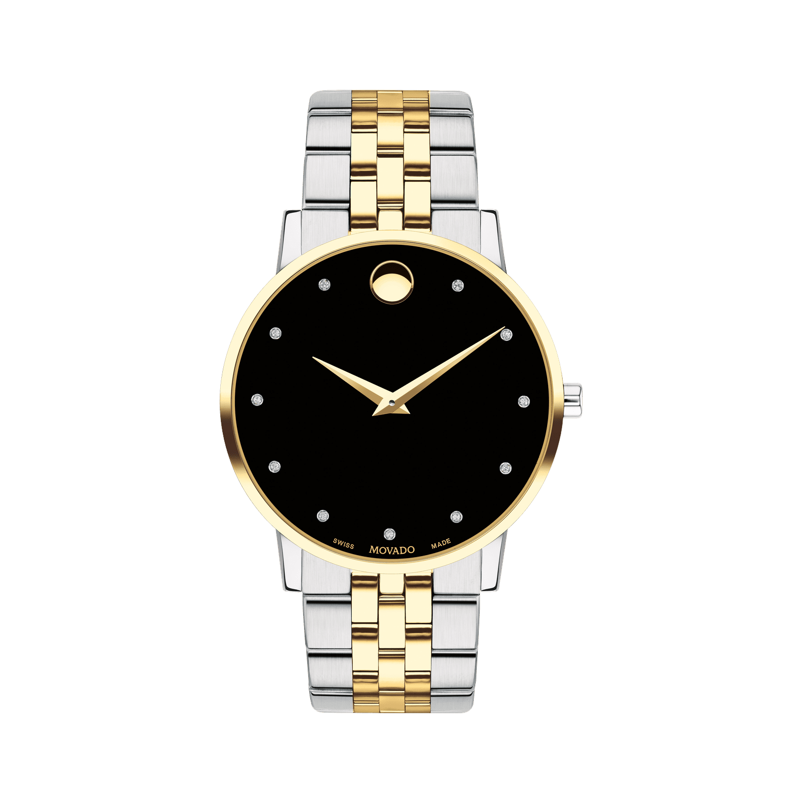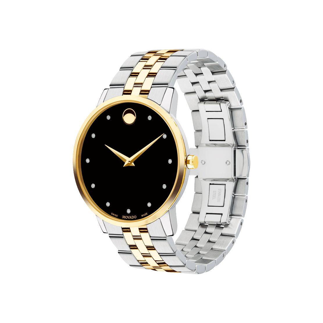 Men's Museum Classic watch, 40 mm yellow gold PVD-finished stainless steel case, round black dial with 11 diamond markers (0.043 t.c.w.) and yellow gold-toned dot and hands, stainless steel and yellow gold PVD-finished link bracelet with deployment clasp.