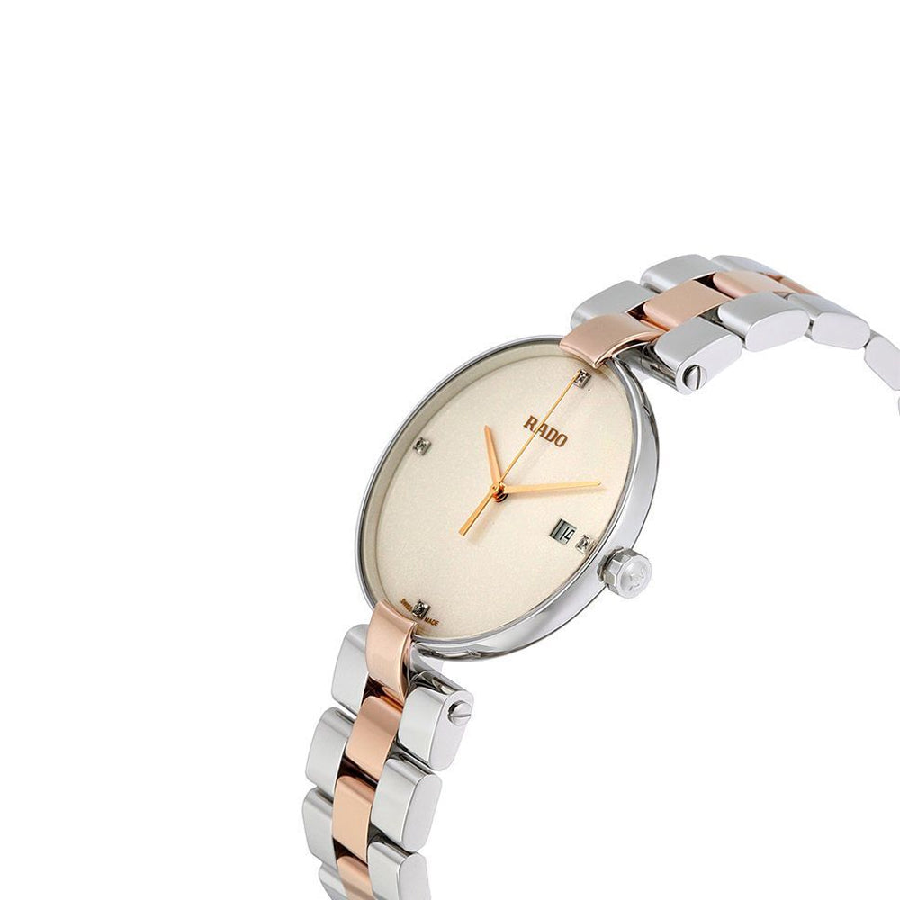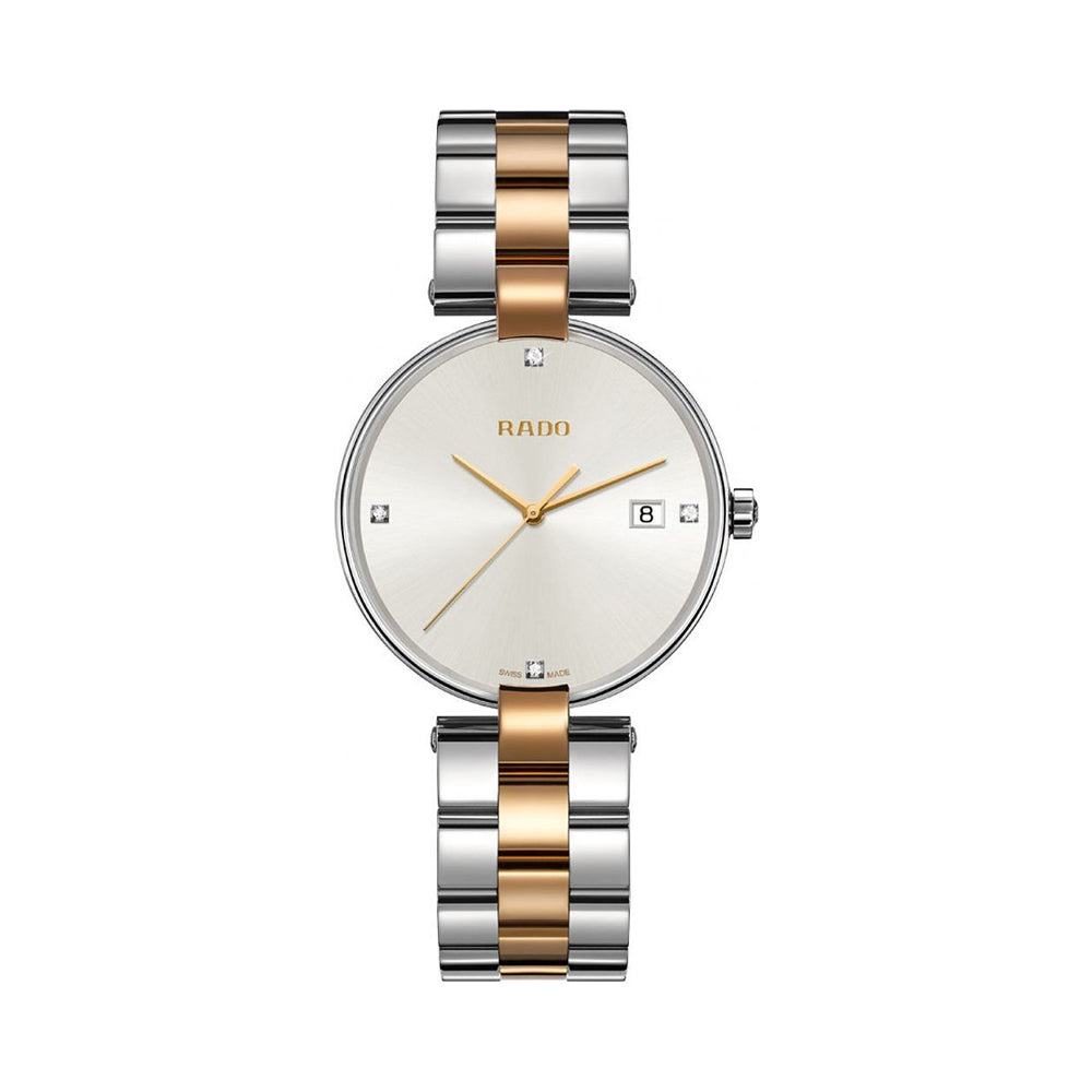 FEATURESThe Rado Coupole R22852713 is water resistant up to 50 metres so that accidental water spills or splashes do not damage its dial and internal parts. It is powered with Swiss made Quartz movement that is famous for its accuracy in time measurement.